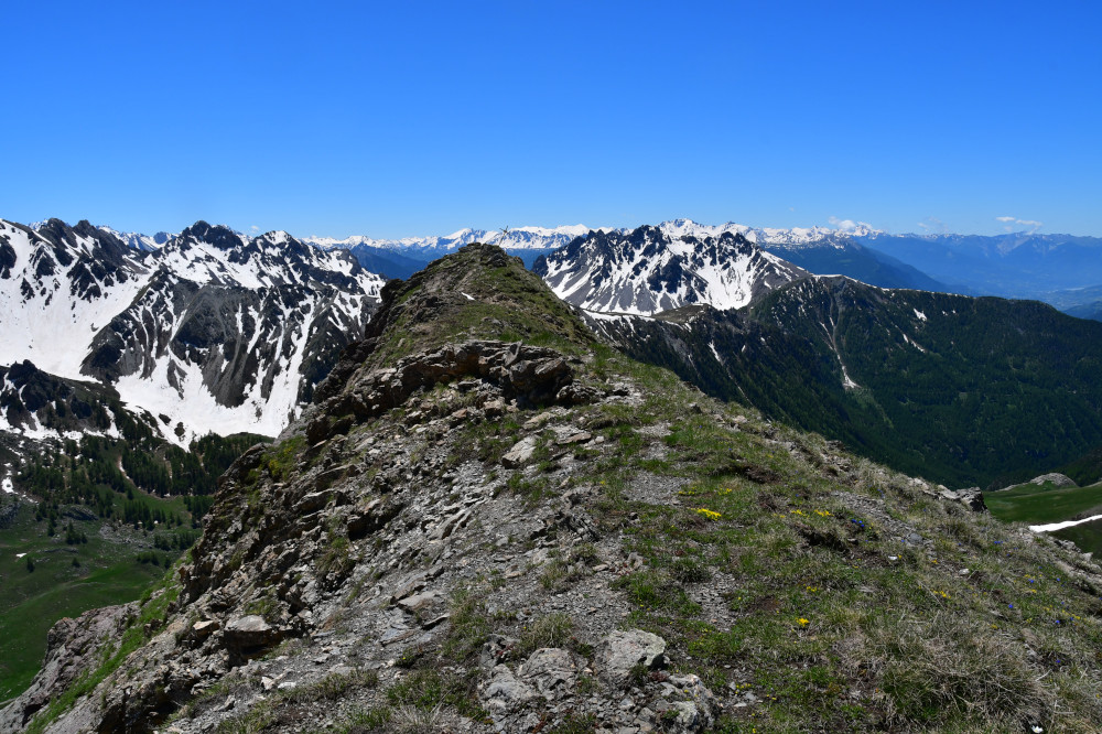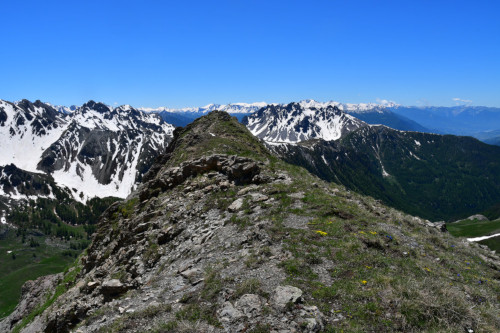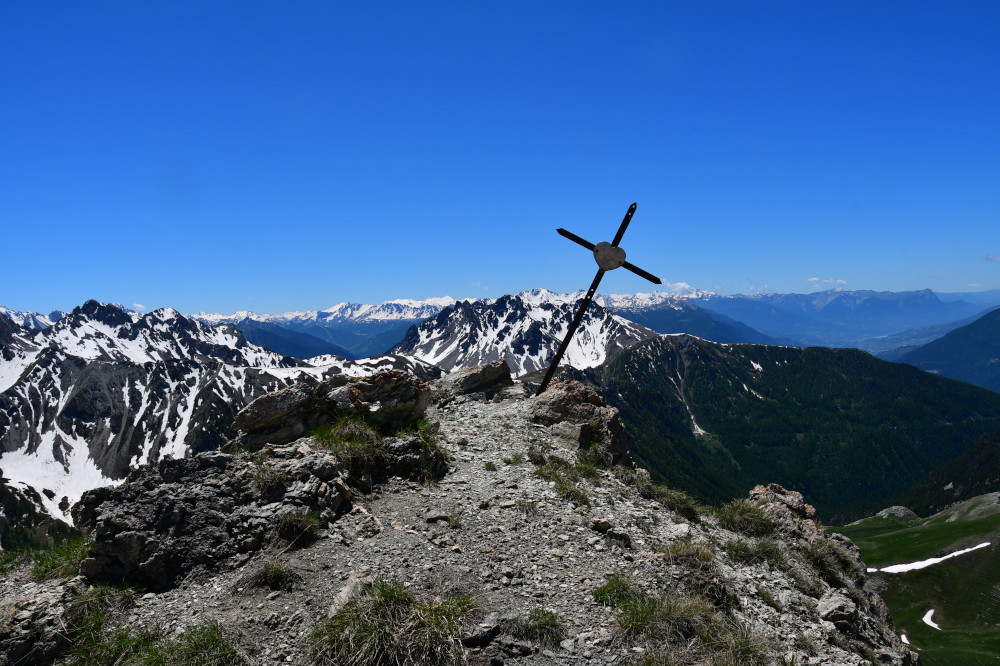 La Croix de Ratier est observée depuis la ligne de crête ouest, puis depuis son sommet. Même s'il n'est pas très élevé, ce sommet est un magnifique belvédère sur les sommets alentour : Béal Traversier, Peyron, Haut Mouriare, Grand, Vallon, Crosas, etc...