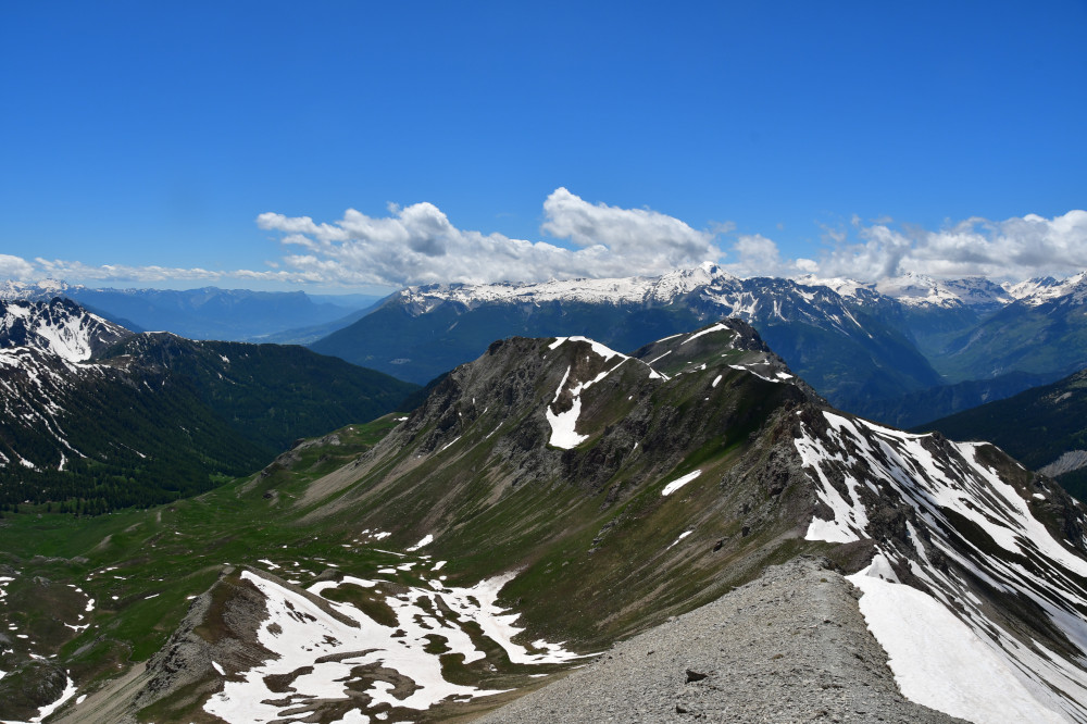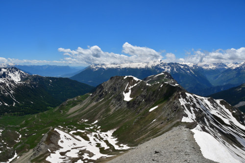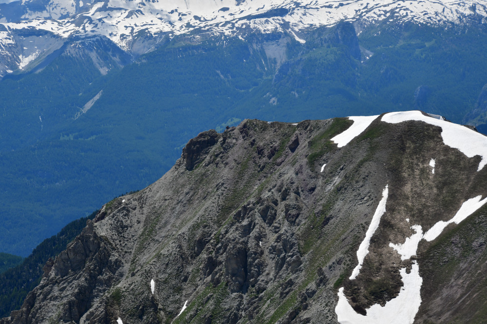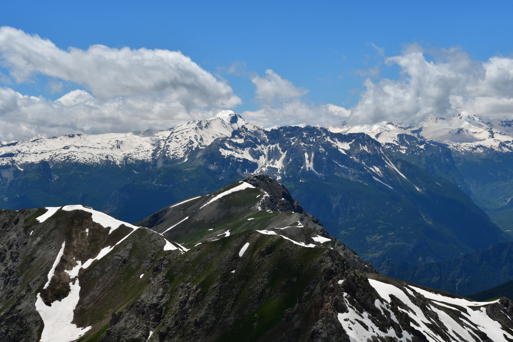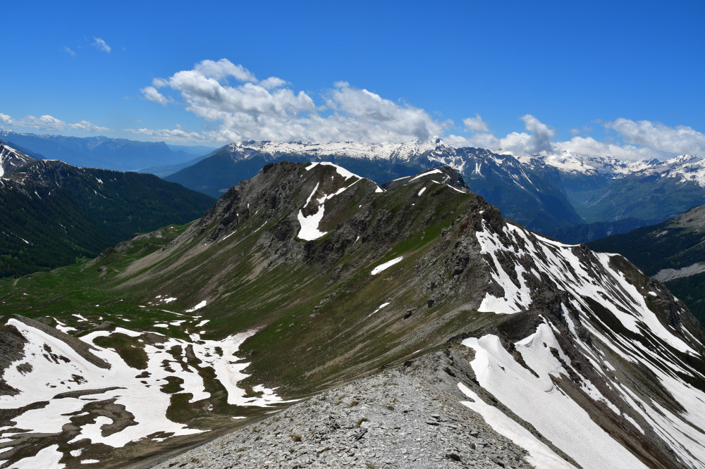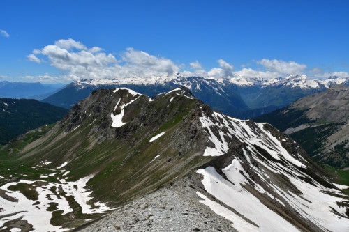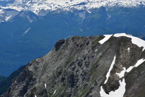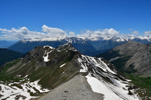 Juste derrière la Croix de Ratier, on aperçoit le pic du Grand Vallon. Et, au loin, en arrière plan, on peut voir la Tête de Vautisse.
