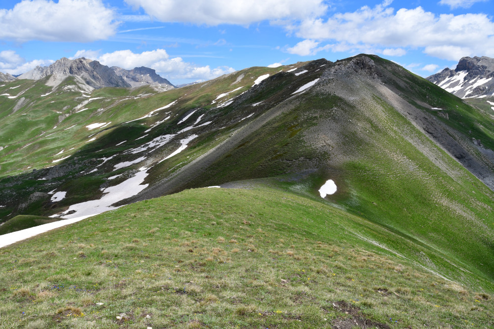 La crête de Terre Blanche est observée depuis le Roc de Chabriller, donc vue du sud-ouest à une distance de 1,1km pour le point 2531.