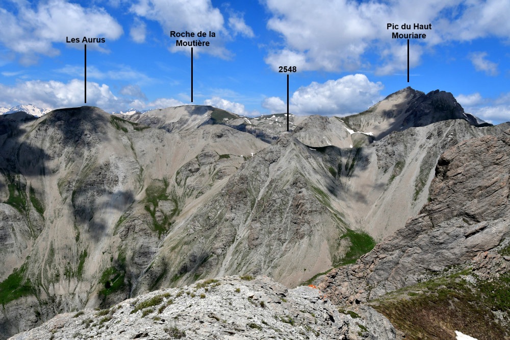 La crête du Peyron est observée depuis le Roc de Chabriller, donc vue de l'ouest à une distance de 3km.