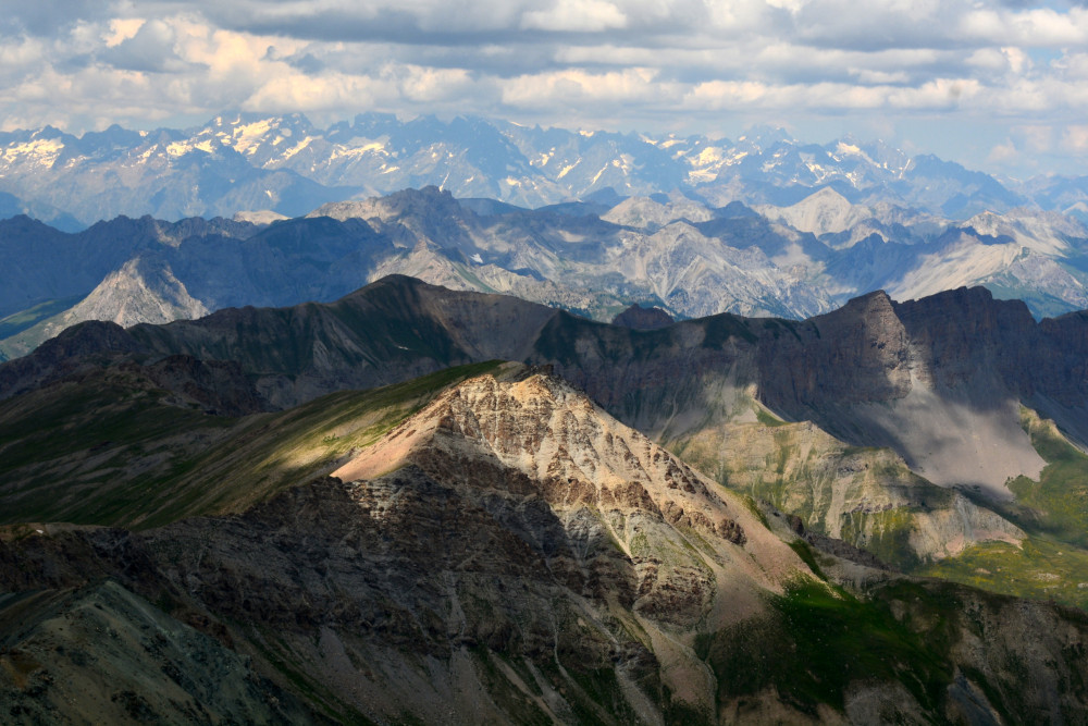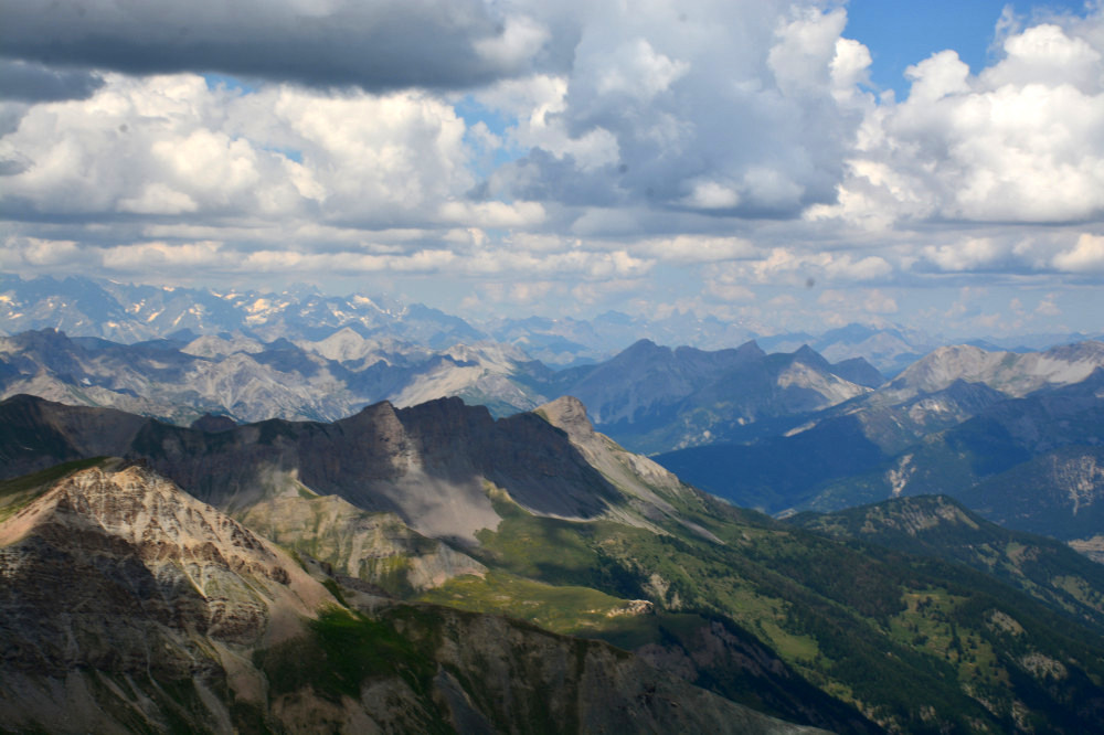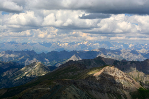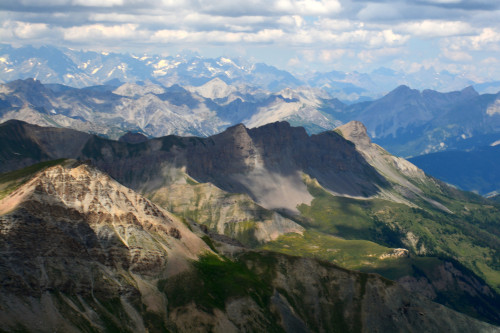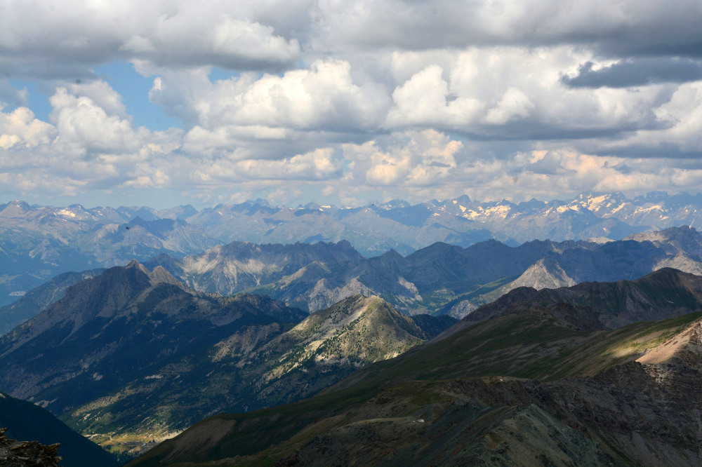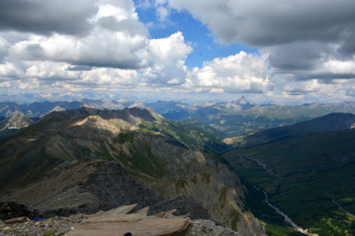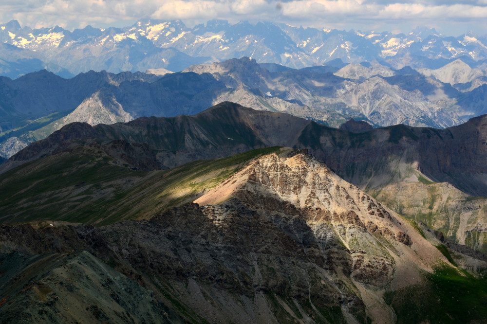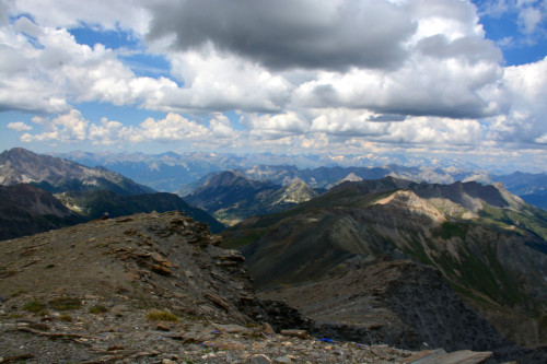 La pointe de Rasis est observée depuis le sommet de la pointe des Avers, donc vue du sud-est à une distance de 6,3km. Sur les photos, elle se trouve juste derrière la pointe des Marcelettes.