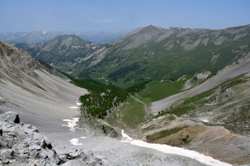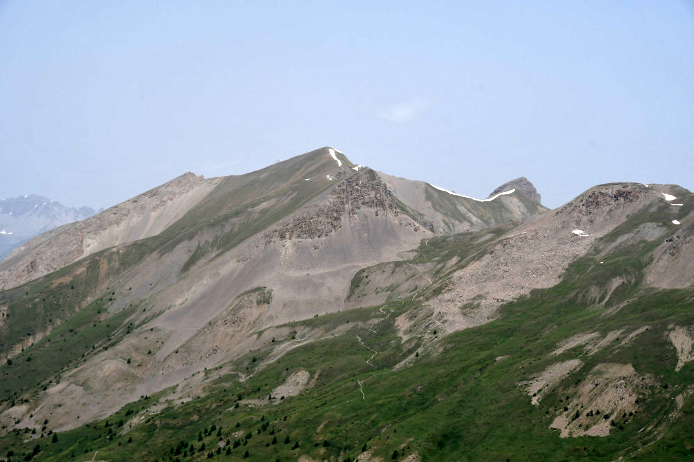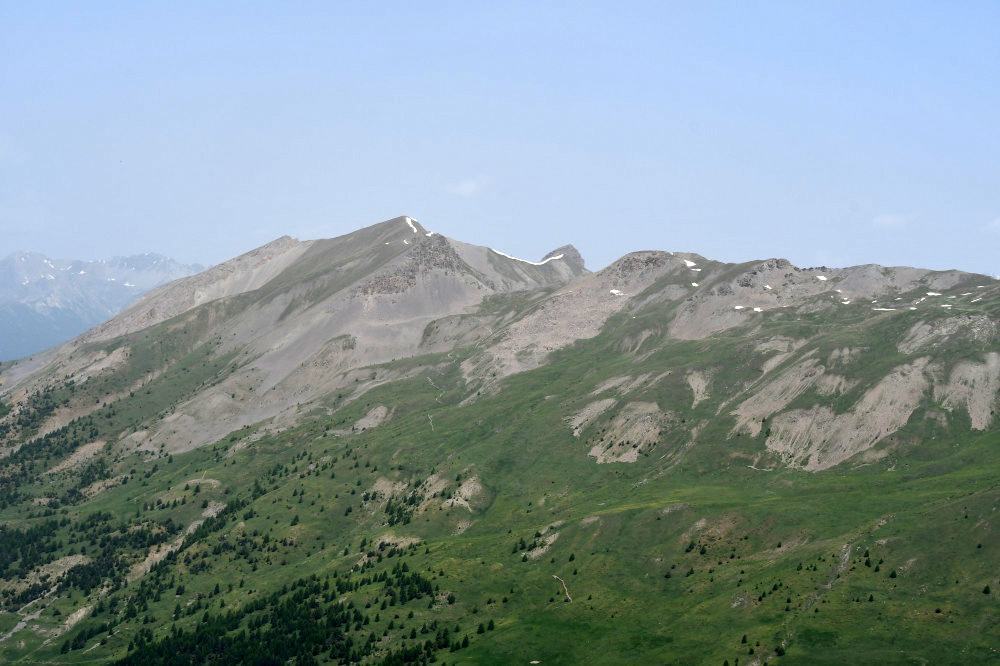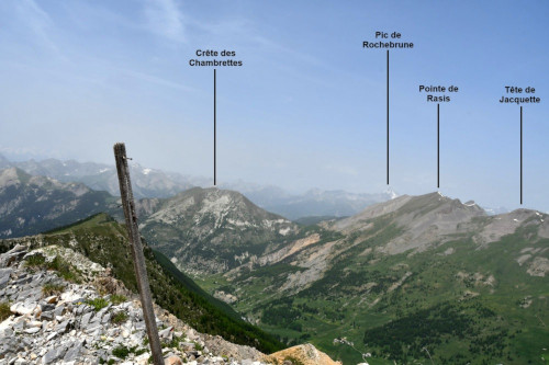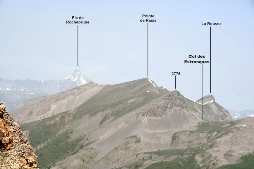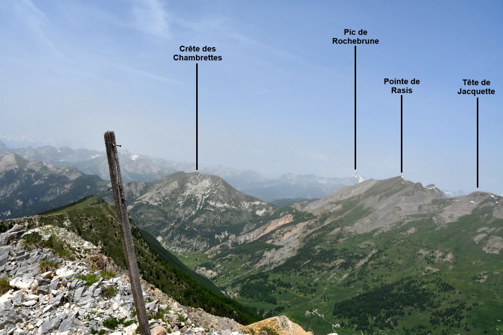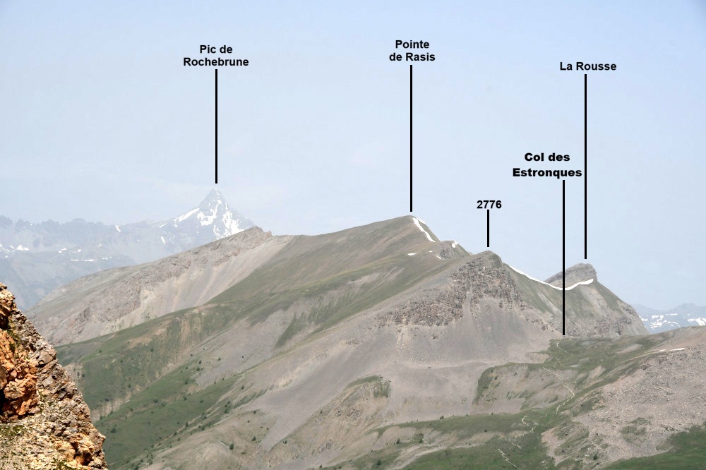 La pointe de Rasis est observée depuis la crête de Beaubarnon et le sommet du Marcous, donc vue du sud à une distance de 4,5km.