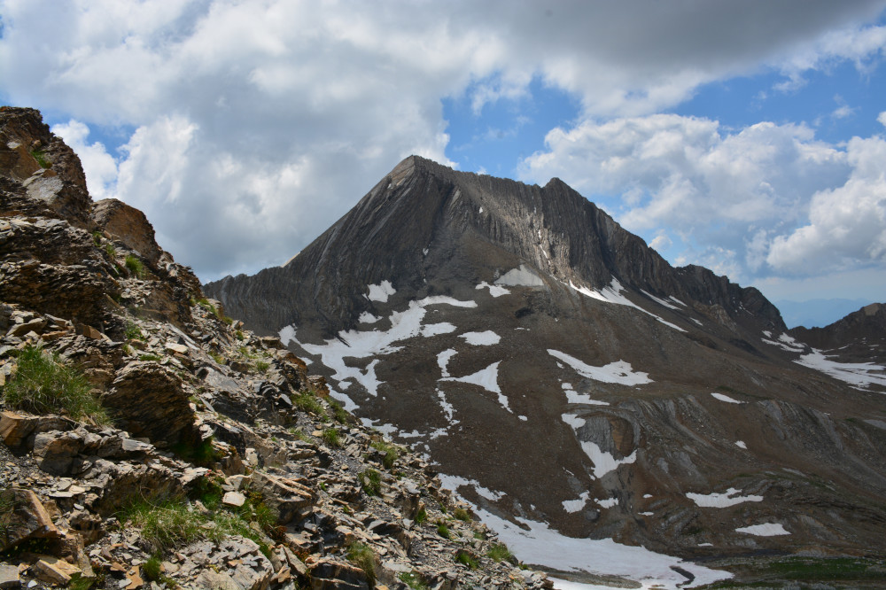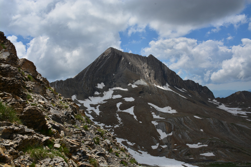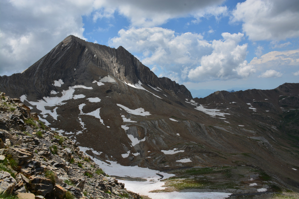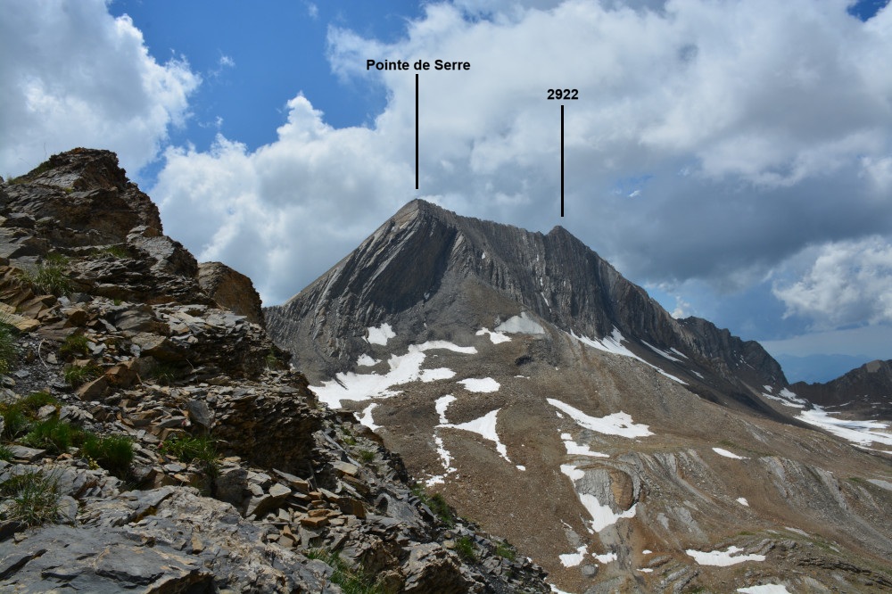La pointe de Serre est observée depuis le col de la Règue, donc vu du nord-nord-est à une distance de 600m.
