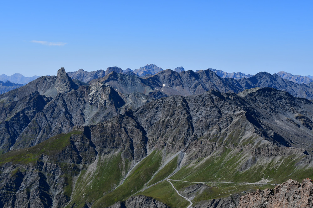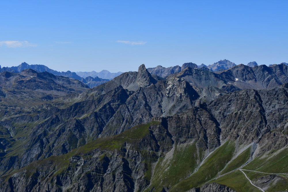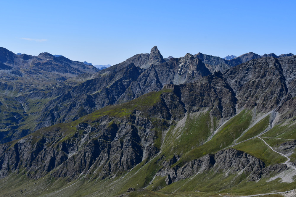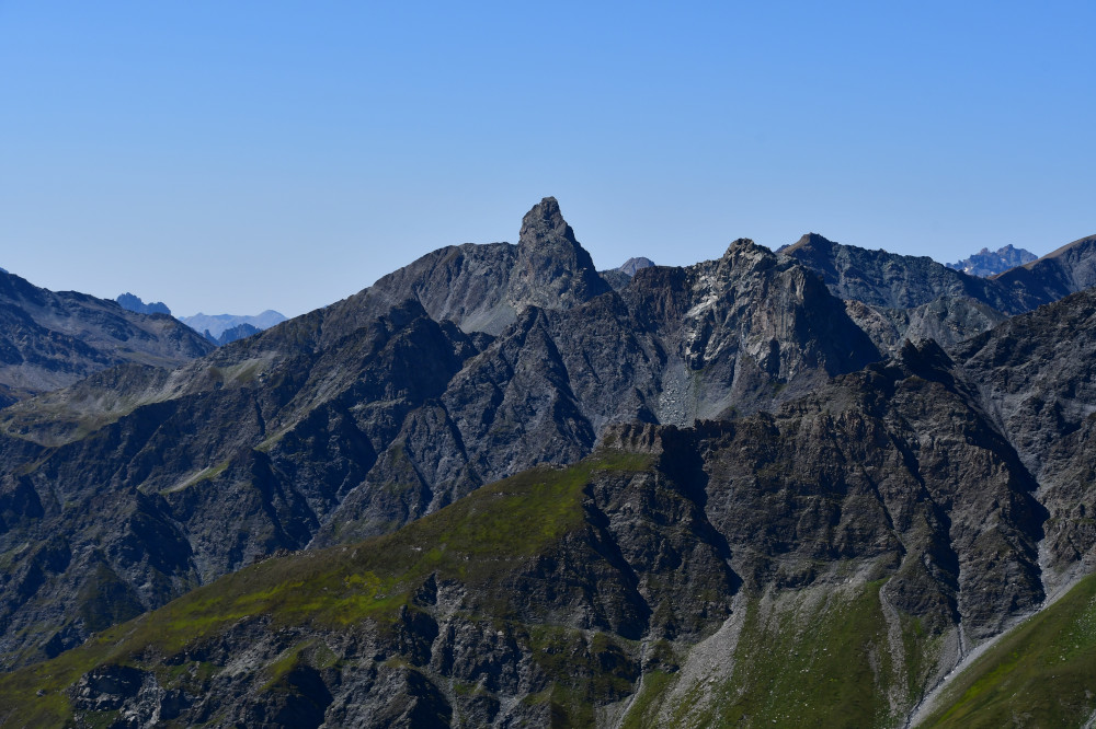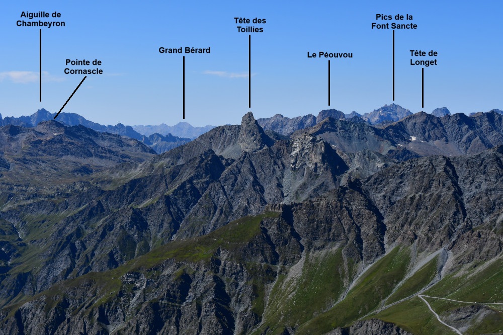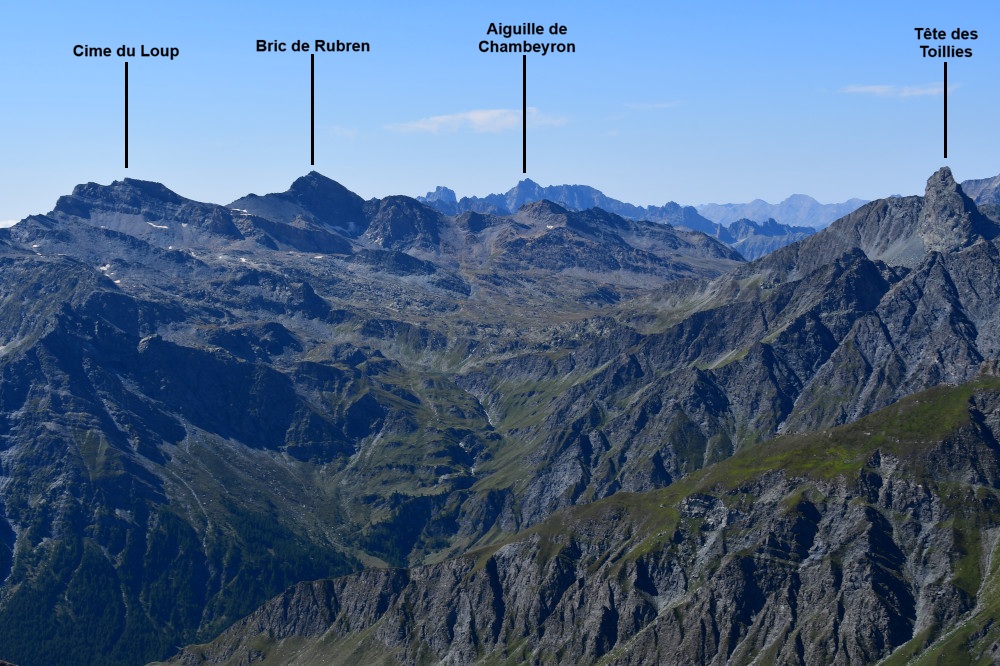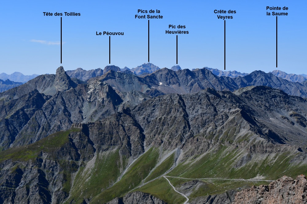 La tête des Toillies est observée depuis le col d'Asti, donc vue du nord-est à une distance de 5,7km.