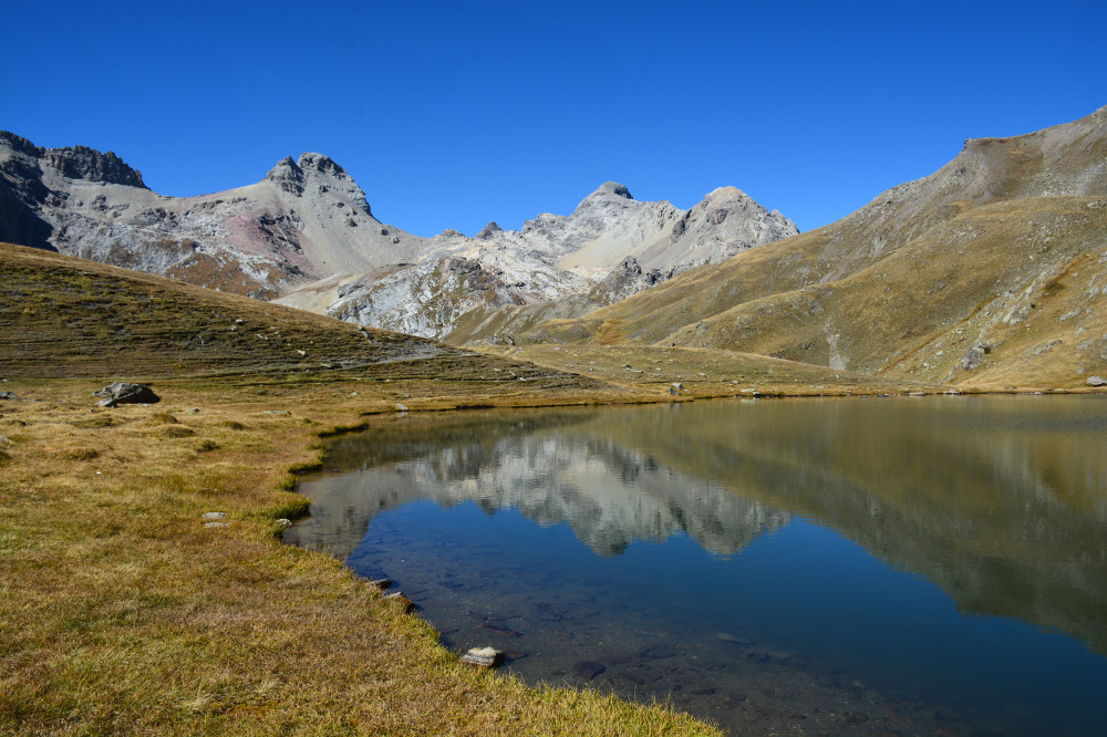 Le lac de la Ponsonnière est photographiée depuis le sentier de randonnée menant au col de Ponsonnière (GR57) et depuis le bord du lac.