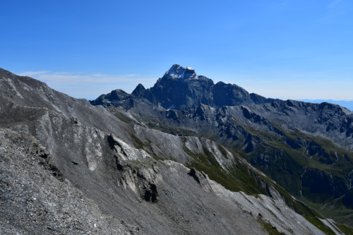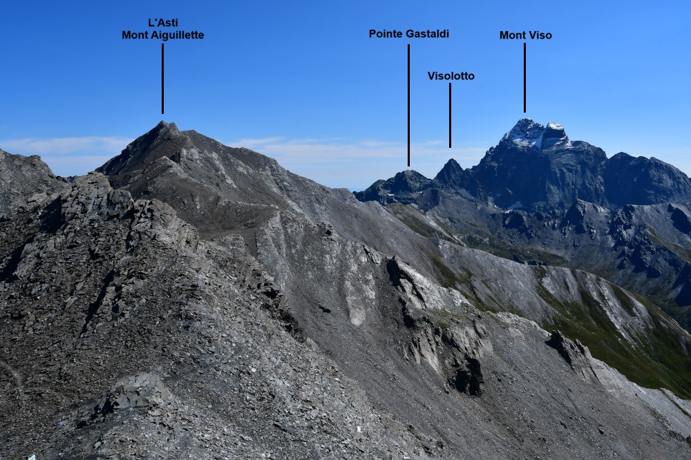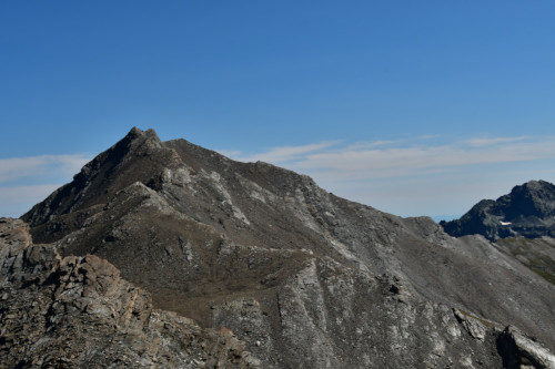 Le Mont Aiguillette ou l'Asti est observé depuis le col d'Asti, donc vu de l'ouest à une distance de 2km.