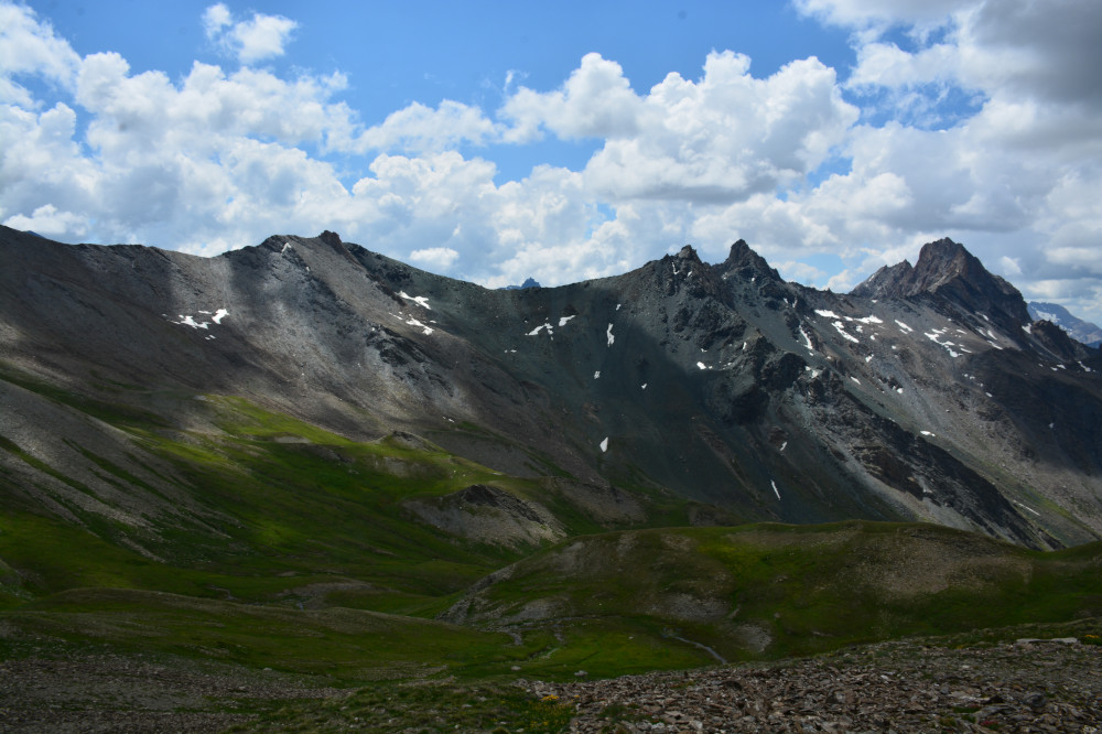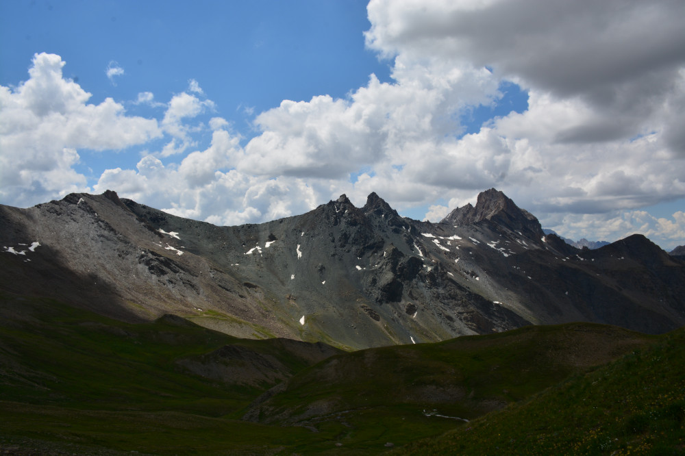 Le Péouvou est observé depuis le sommet de la pointe des Avers, donc vu du nord à une distance de 3,5km.