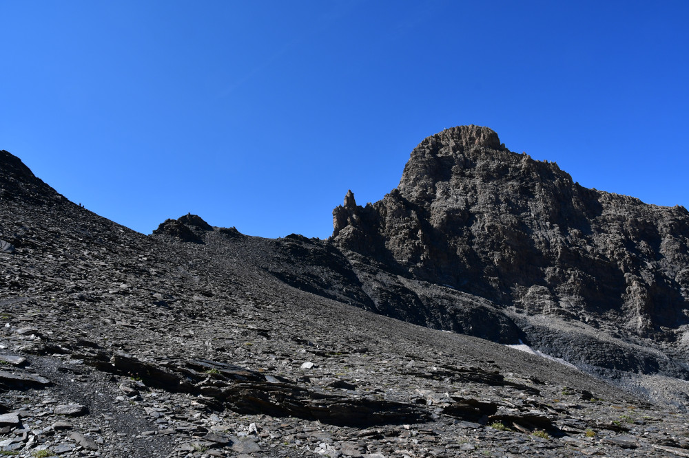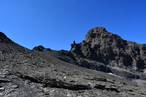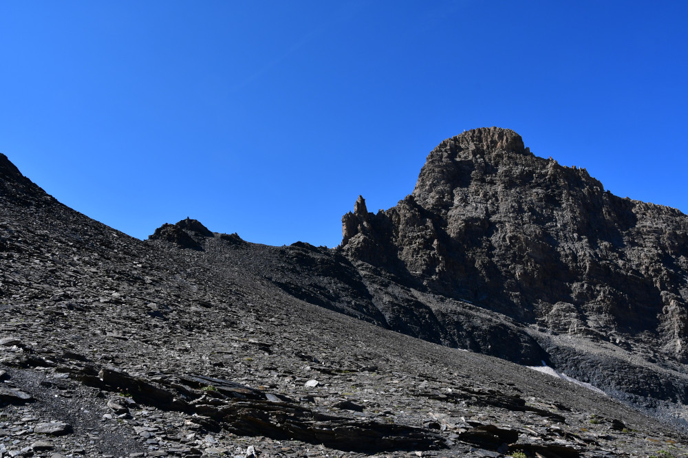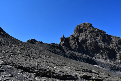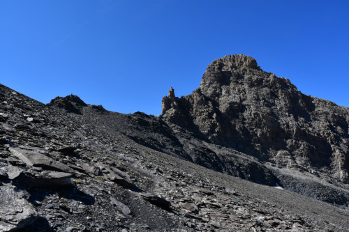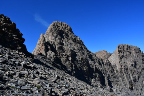 Le Pic d'Asti est observé depuis le col d'Asti, donc vu de l'est à une distance de 180m.
