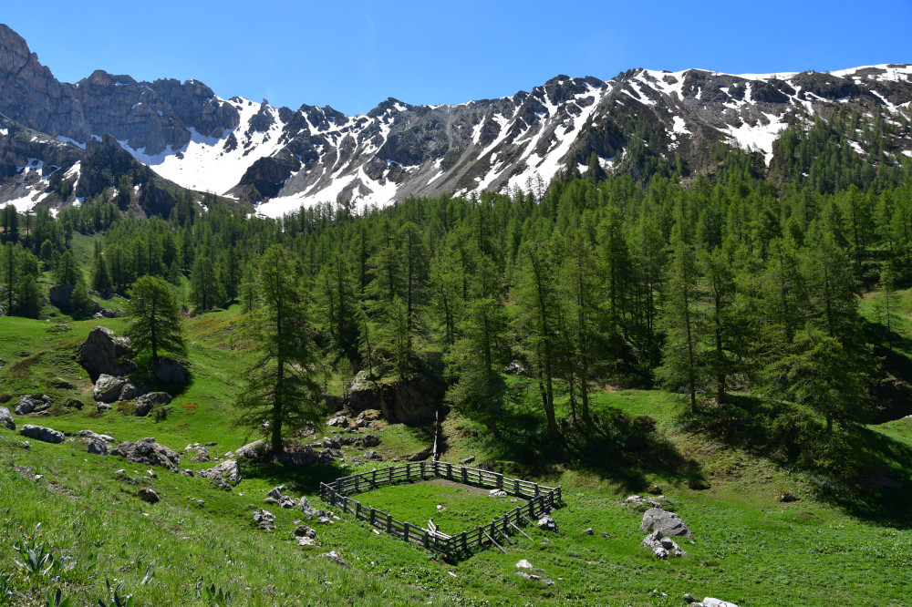 Le pic du Béal Traversier est observé depuis le Ratier (zone de prairie située sous la Croix du Ratier), donc vu de l'ouest à une distance de 1,5km.