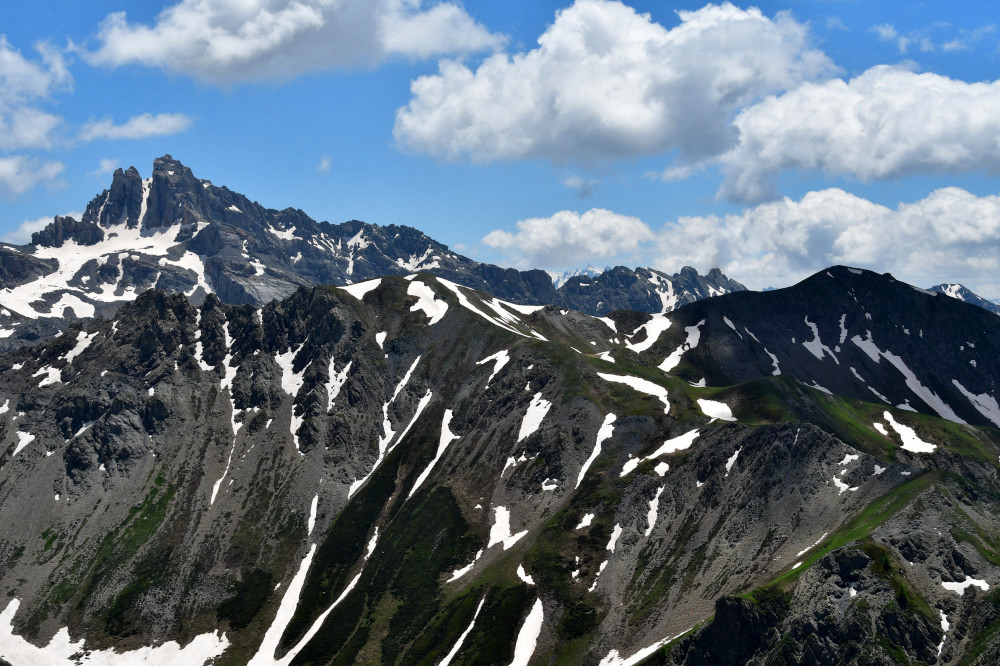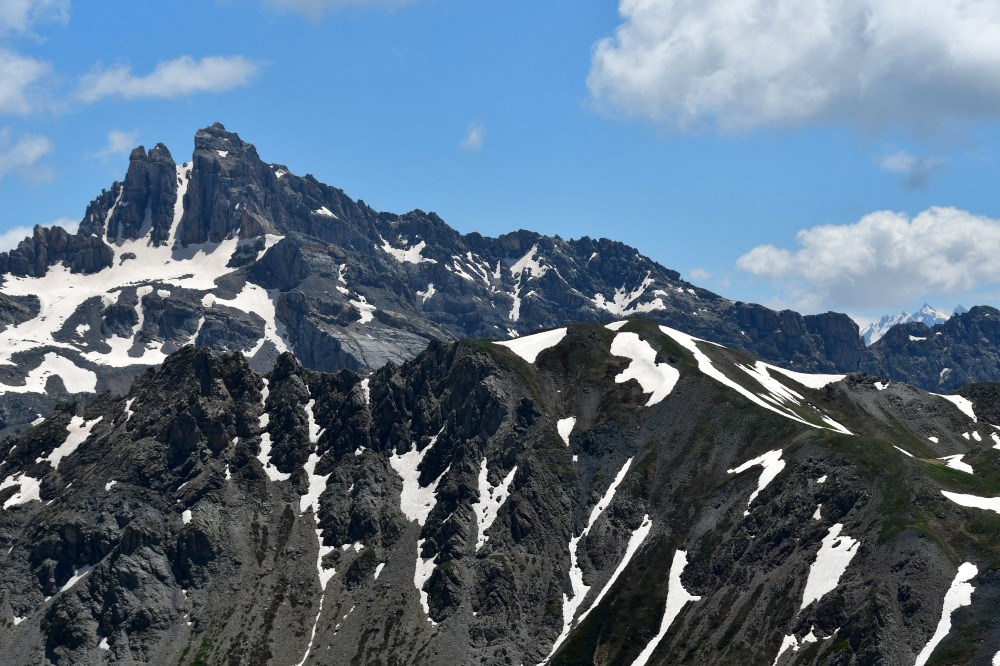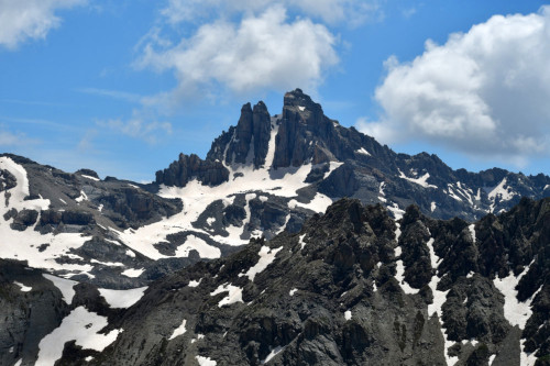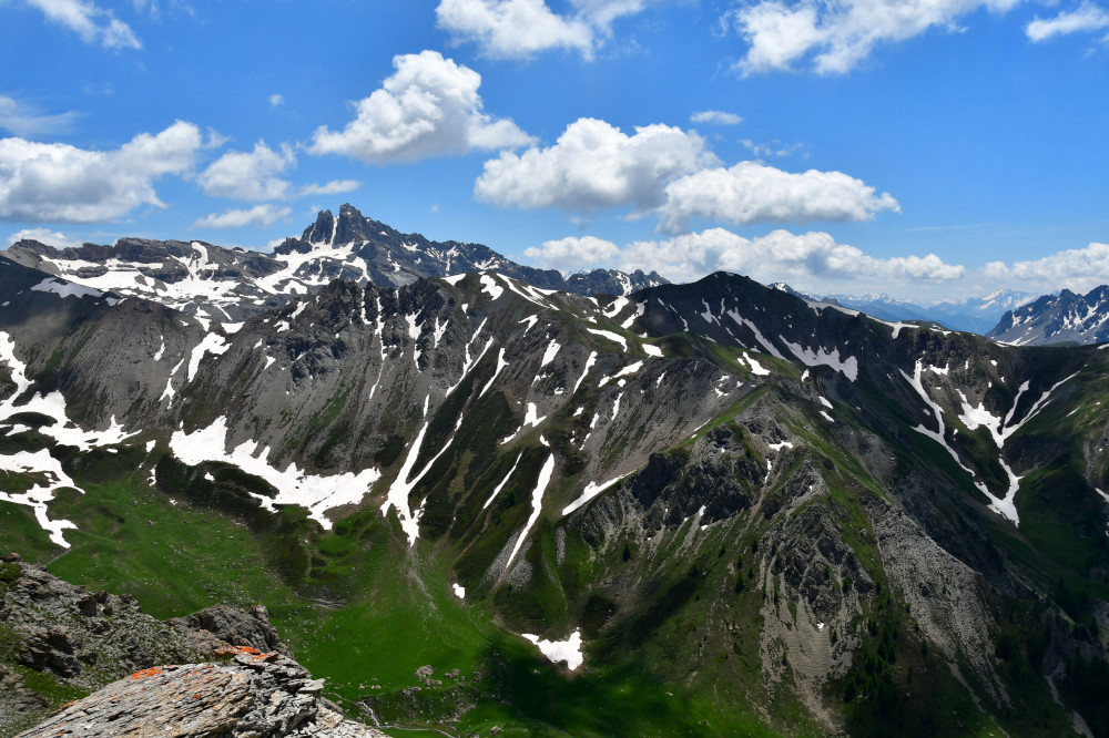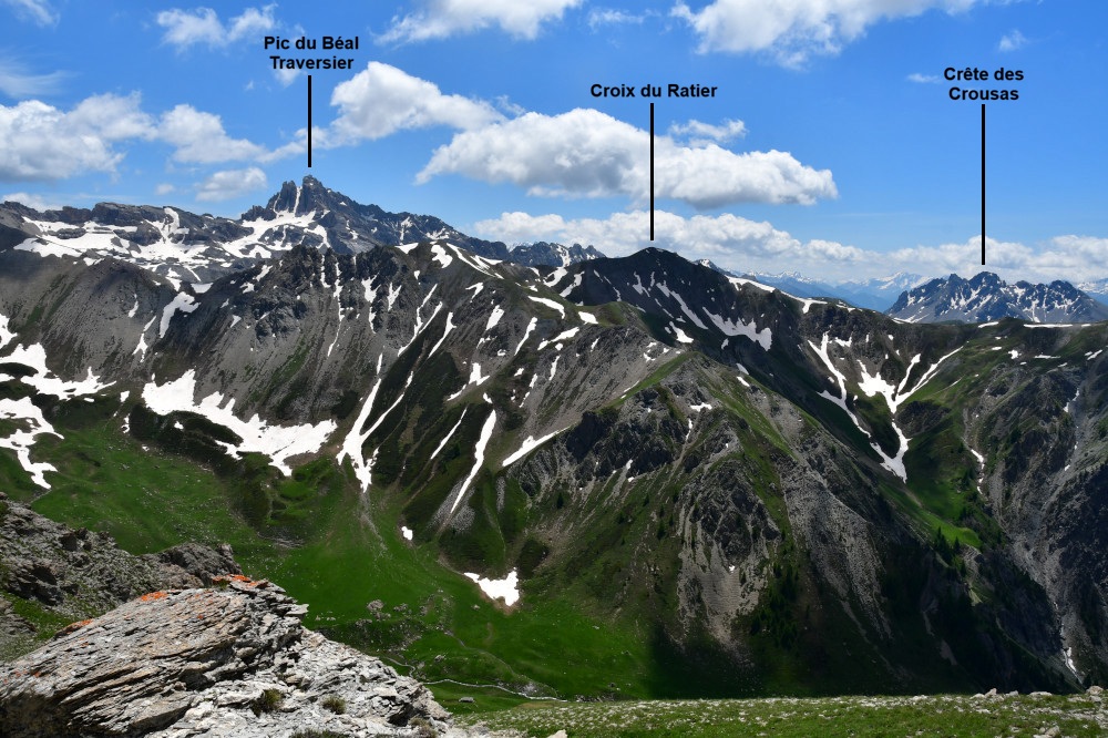 Le pic du Béal Traversier est observé depuis le Roc de Chabriller, donc vu du nord-ouest à une distance de 3,5km.