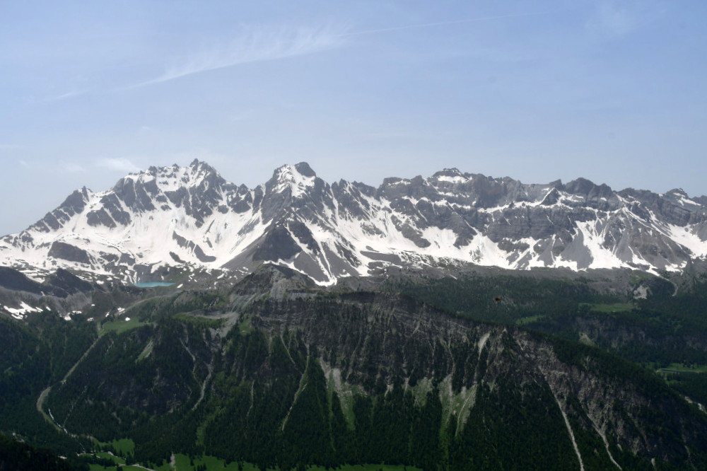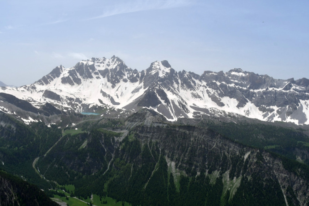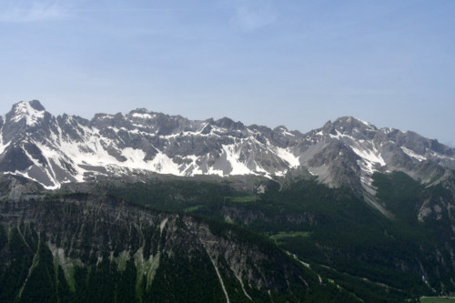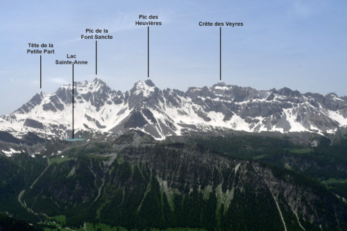 Les pics de la Font Sancte sont observés depuis le sommet du Marcous, donc vus du nord à une distance de 5,5km.