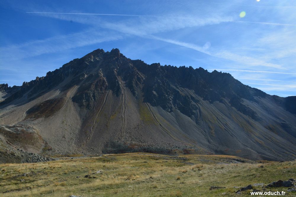 • Piste vers l'Alpe du Lauzet. En arrière plan, la Tête de Cassille.