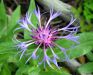 Les fleurs sont bleues parfois pourpres en capitules avec de très longs fleurons externes, aux bractées à la base du capitule à bord brun-noir.