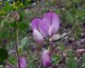 Les fleurs sont groupées par 2 à 3, sur de petits rameaux axillaires sans feuilles, formant un pédoncule commun. L'étendard est strié de rouge.