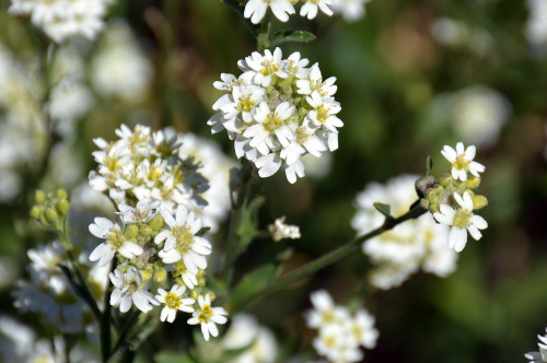 Inflorescence : Racème simple ; pétales blancs, bifides, longs de 4 à 6 mm.
