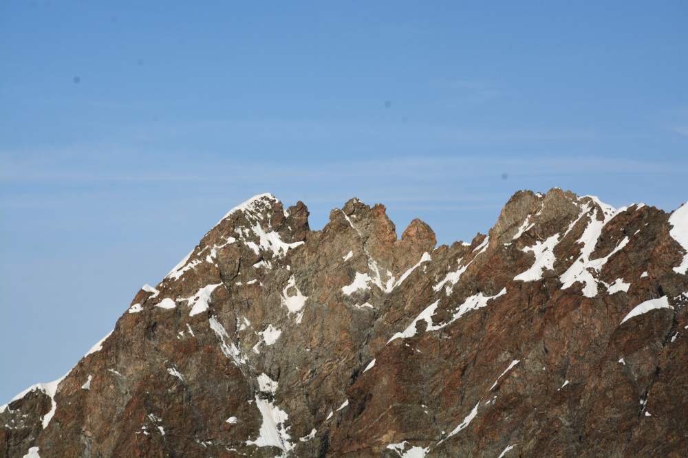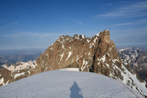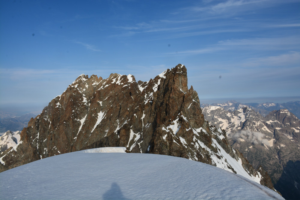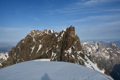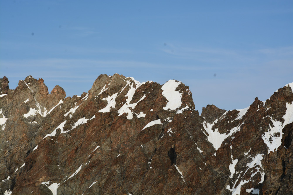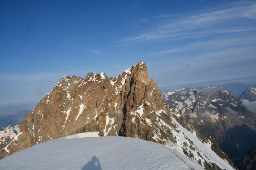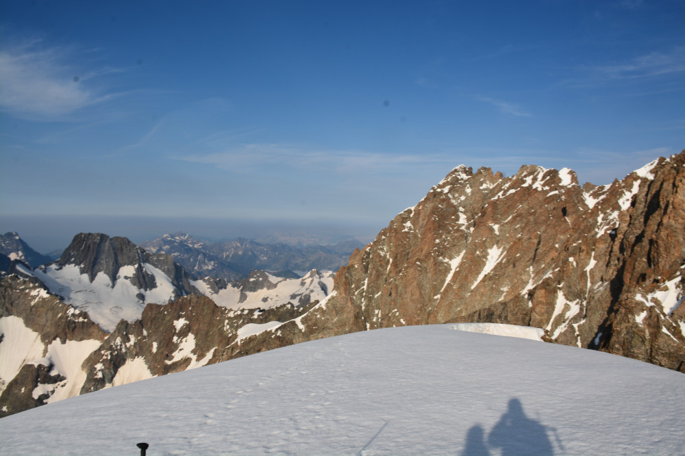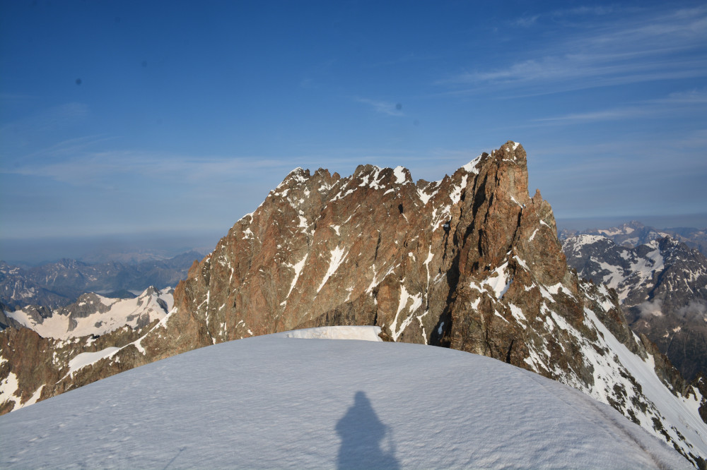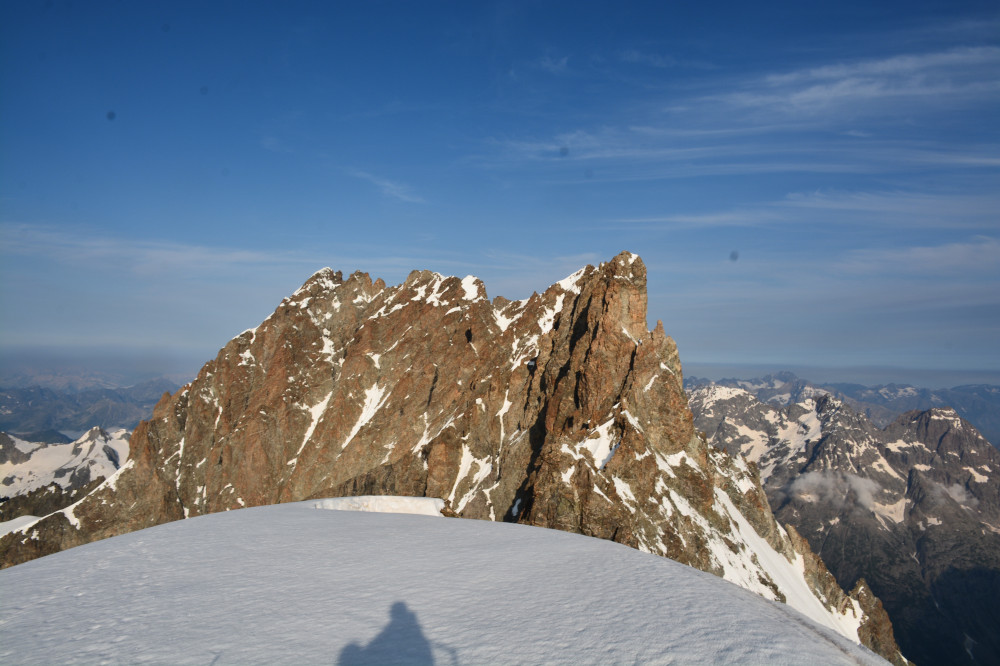 Les sommets d'Ailfroide centrale et occidentale sont observés depuis l'Ailefroide orientale, donc vus du nord-nord-est à une distance de 1km.
