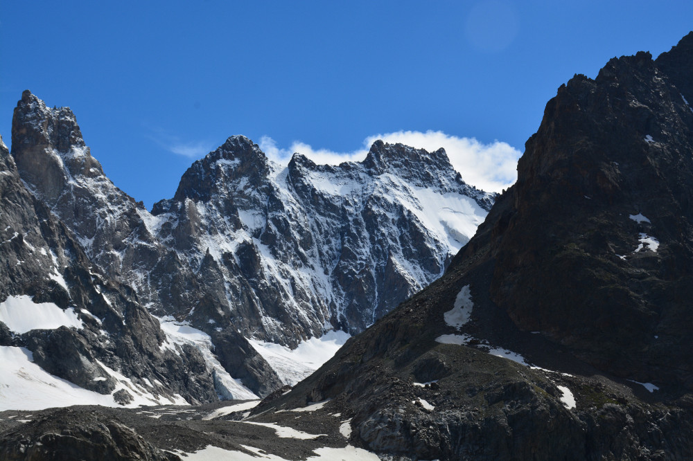 Panorama sur le Pelvoux, Ailefroide et le pic Sans Nom
