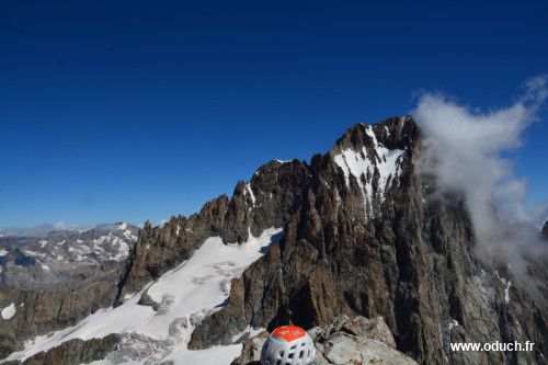La Barre des Écrins est observée depuis le sommet du pic Coolidge, donc vus depuis le sud à une distance de 1,23 km.