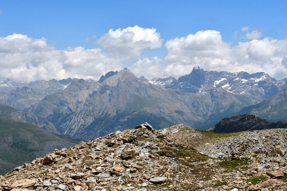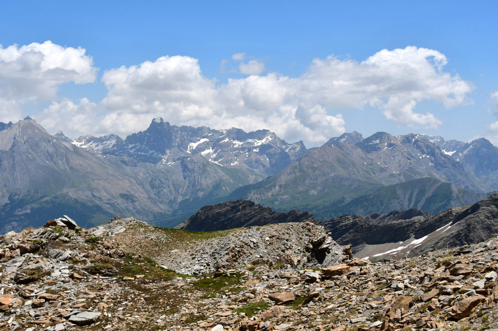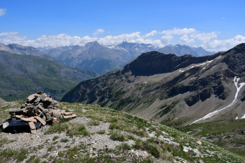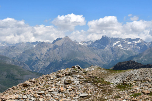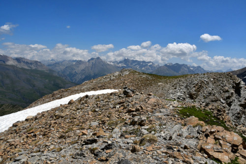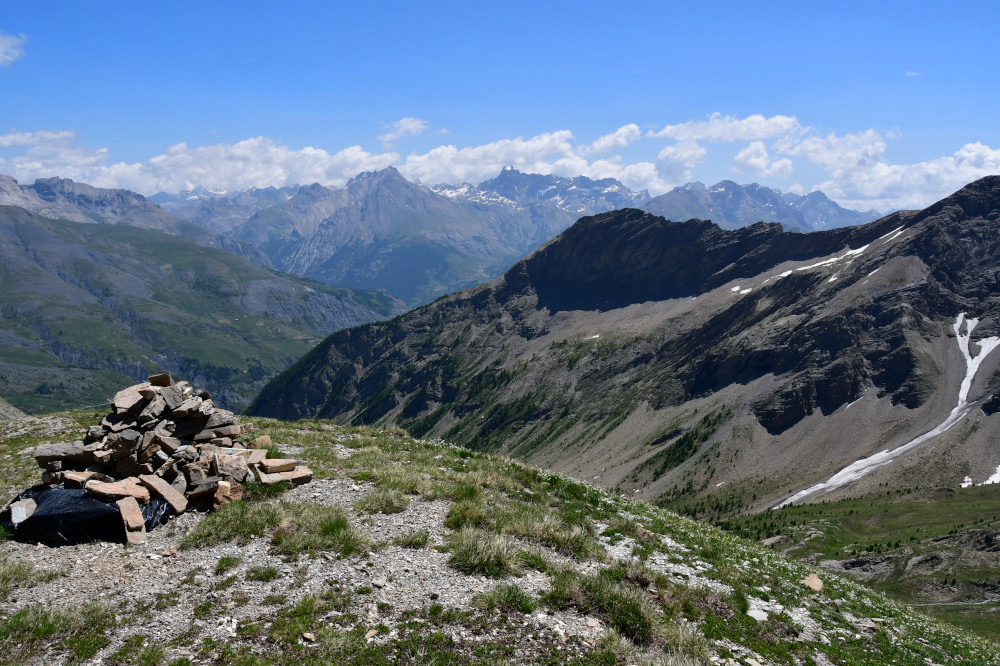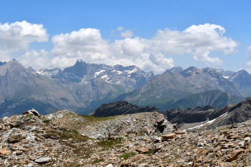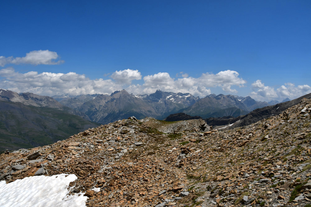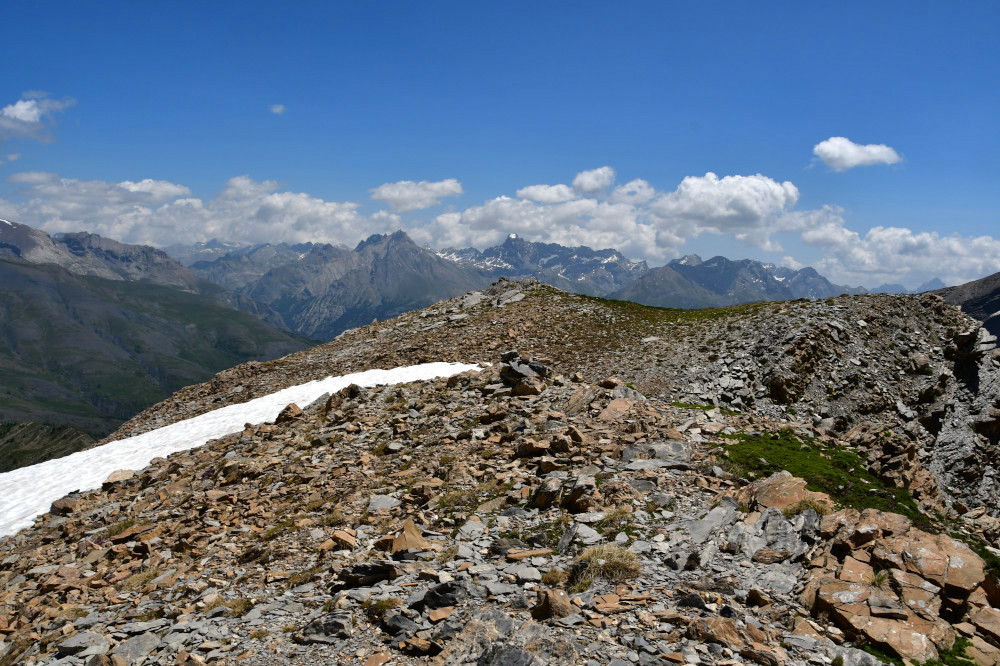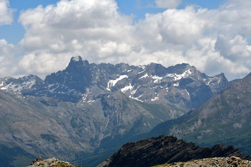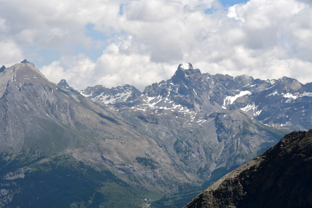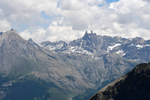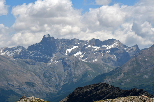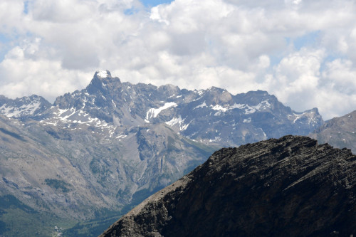 Le brec de Chambeyron est observé depuis le vallon du Crachet, donc vu de l'ouest à une distance de 14km. Dans la même direction, on aperçoit la Souvagea.