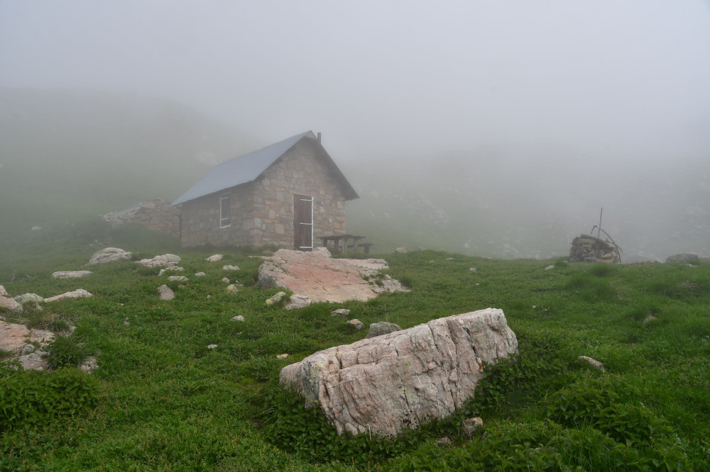 La cabane de Jaffueil est observée lors de la montée au col de Crévoux.