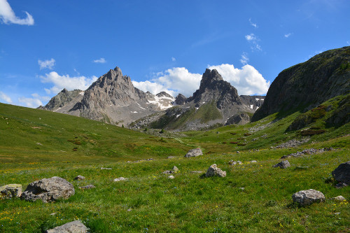 Les deux lignes de crête : crête du Diable et crête du Diable, photographiées depuis le sentier du GR57, au niveau de du ruisseau du Chardonnet au point 2066. Vu depuis le nord. Distance : 2km