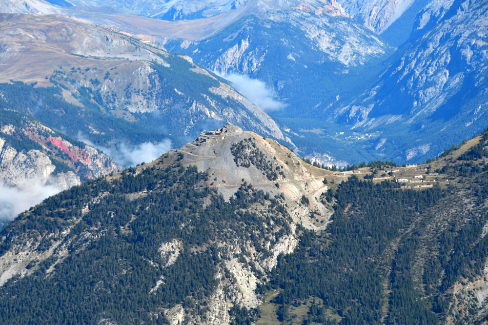 L'ancien Fort de l'Infernet est observé depuis le sommet du Grand Peygu, donc vu du sud-sud-est à une distance de 6.7km.