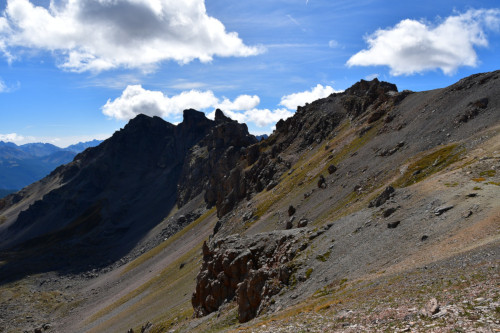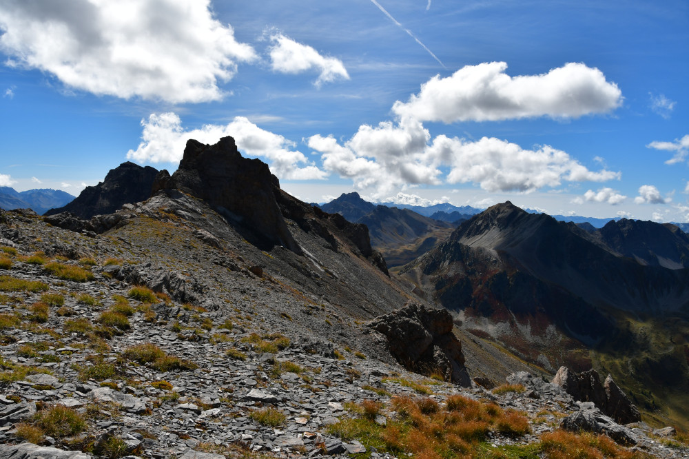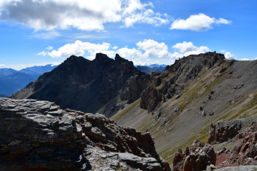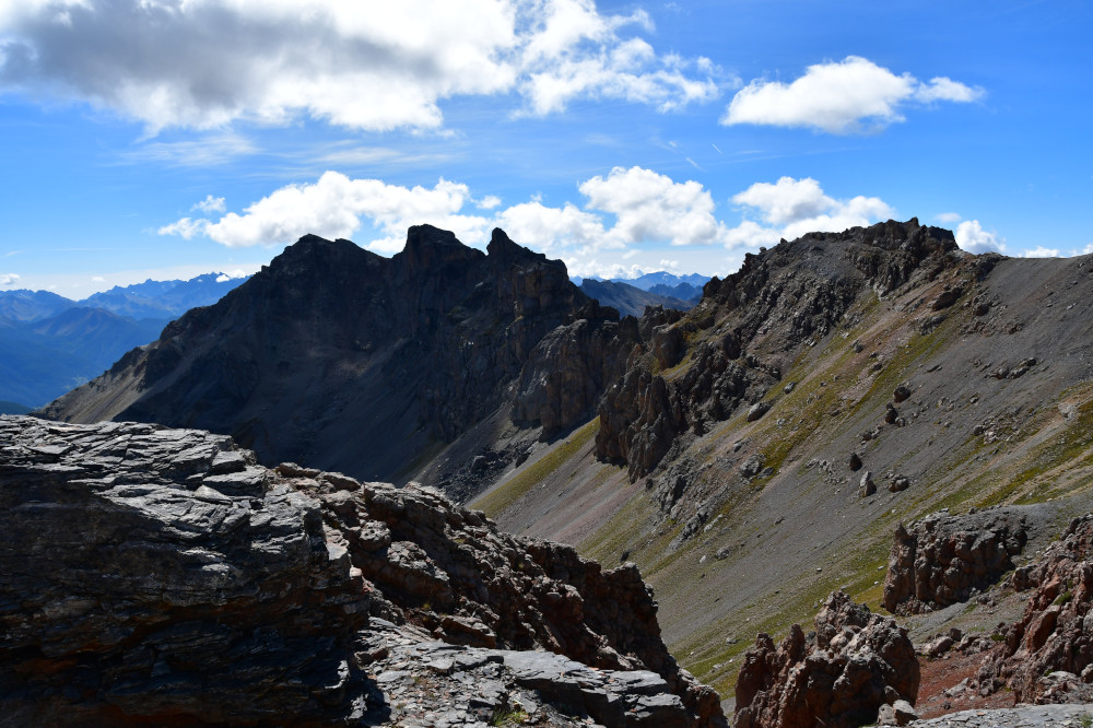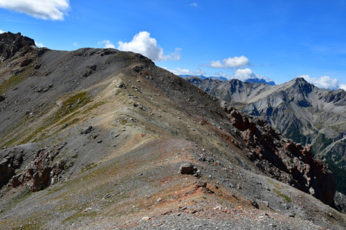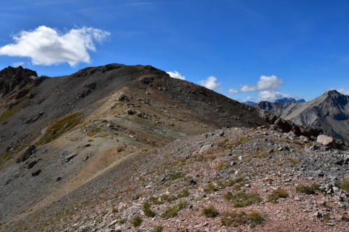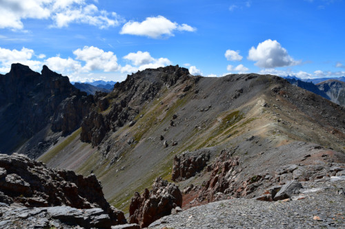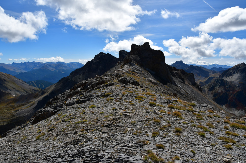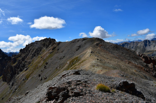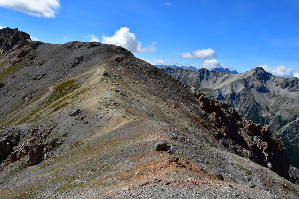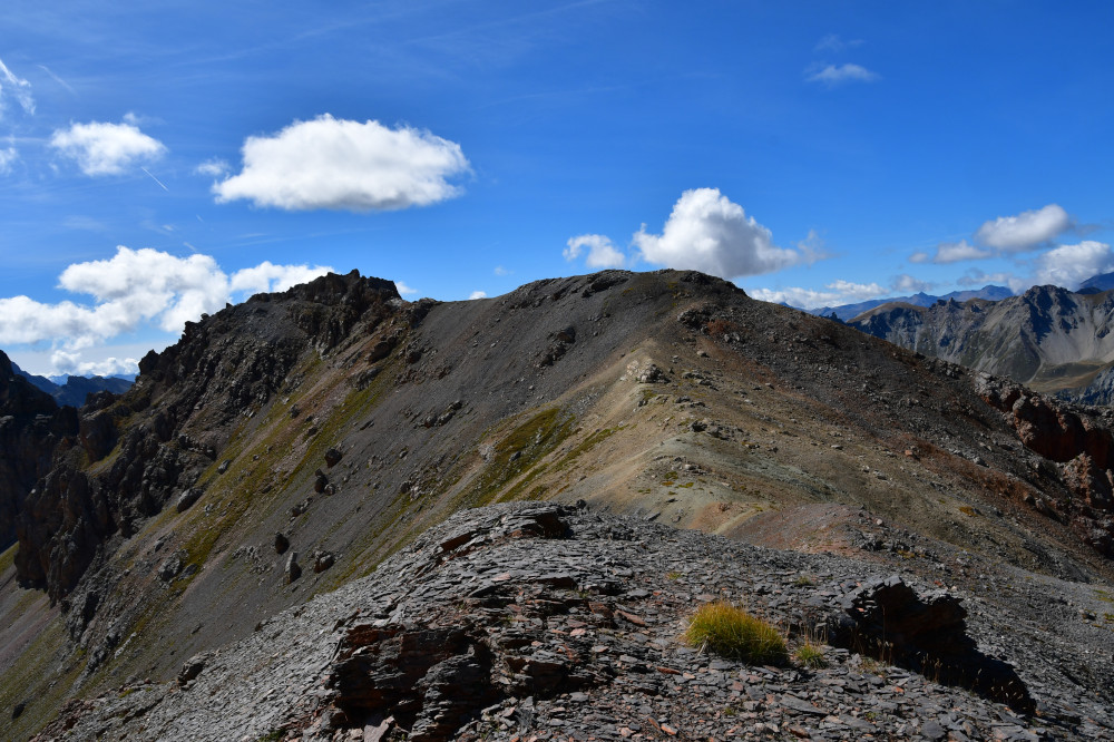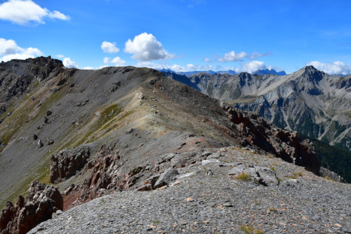 La Crête de Buguet est observée depuis le col des Peygus, puis de la crête elle-même, donc vue du nord à une distance de 375 m pour le point culminant à 2759 m.
