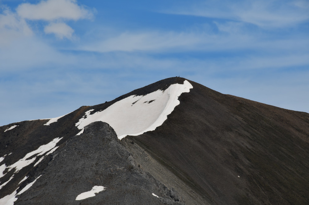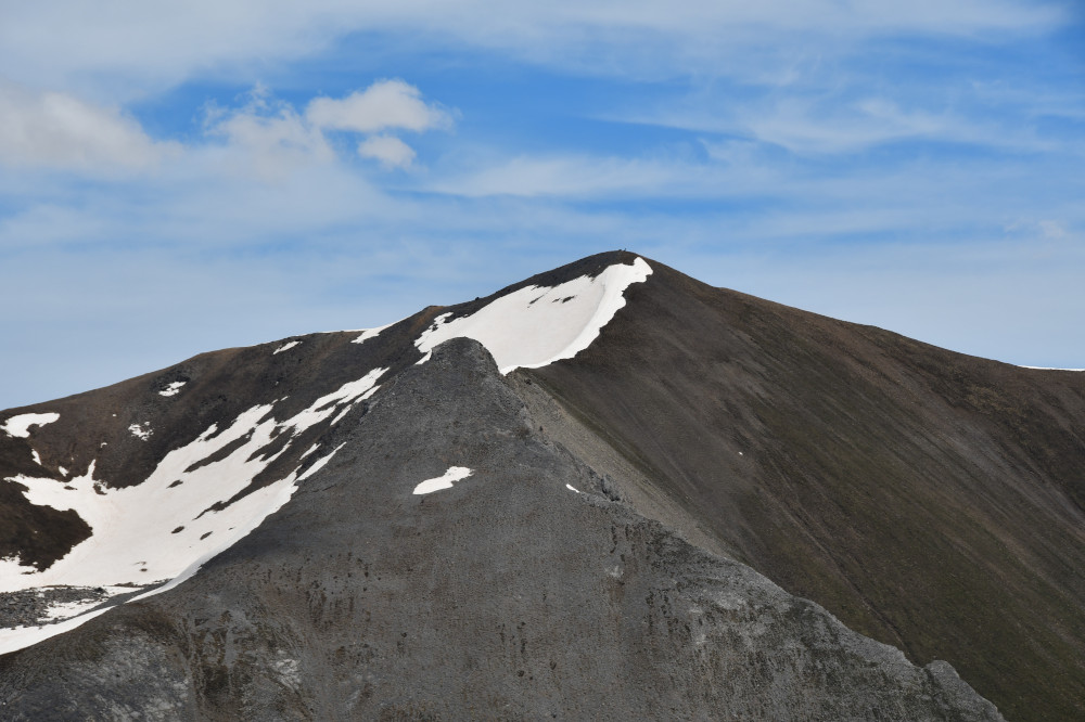 La Pointe de Rasis est observée depuis la crête des Chambrettes, donc vue de l'ouest à une distance de 2,4km.