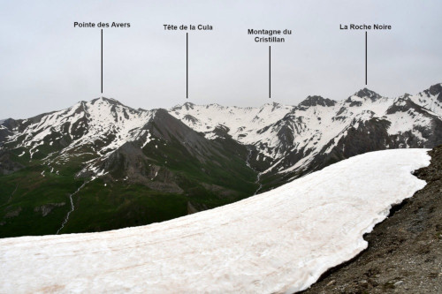 La Pointe des Avers est observée depuis le sommet du Queyrellet, donc vue de l'ouest-sud-ouest à une distance de 3,9km.