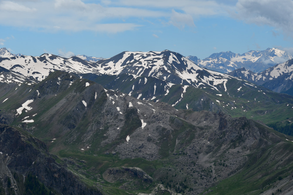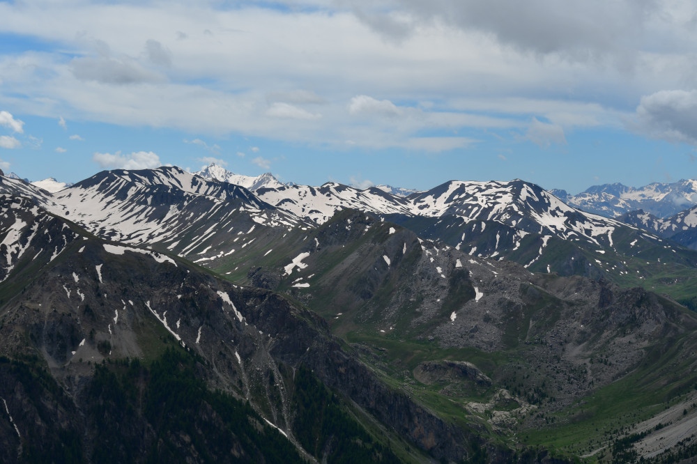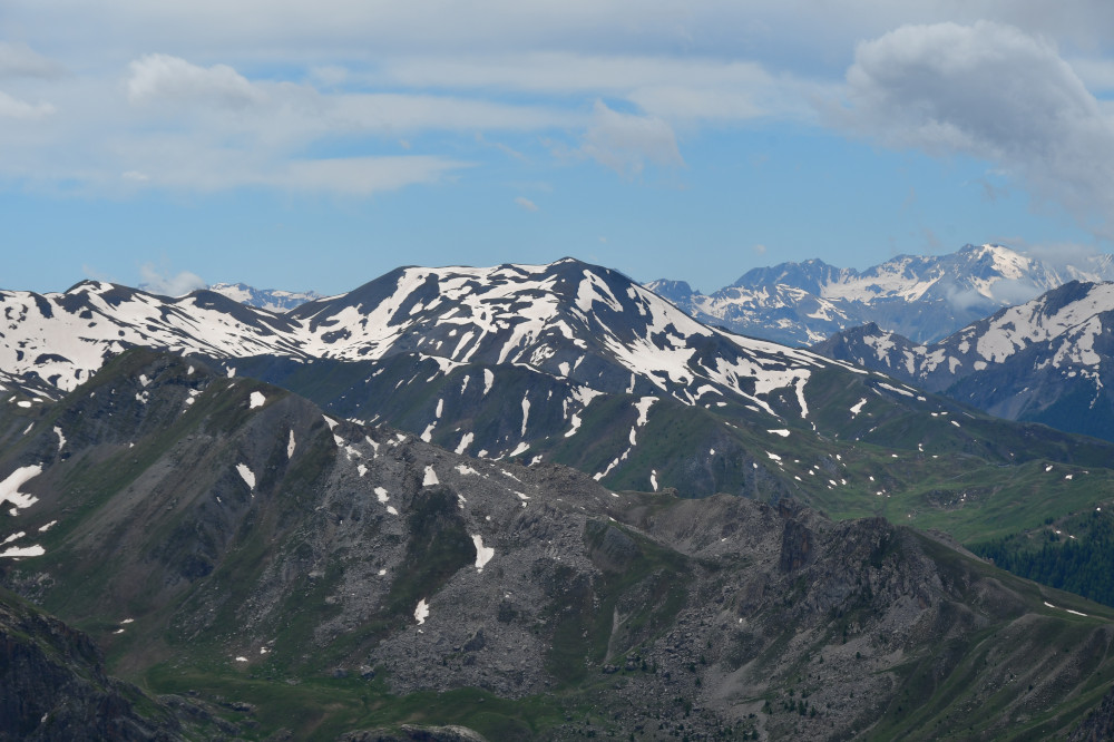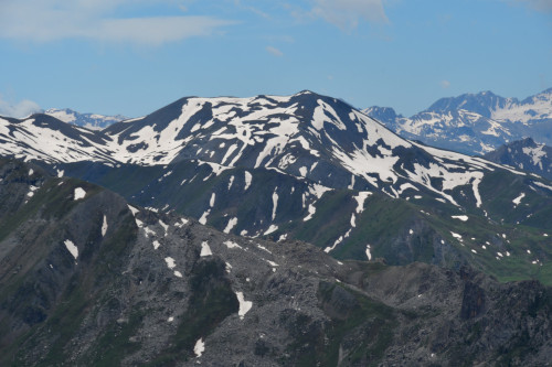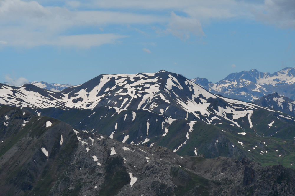La Tête de Paneyron est observée depuis le sommet du Pic d'Escreins, donc vue du nord à une distance de 9,9km.