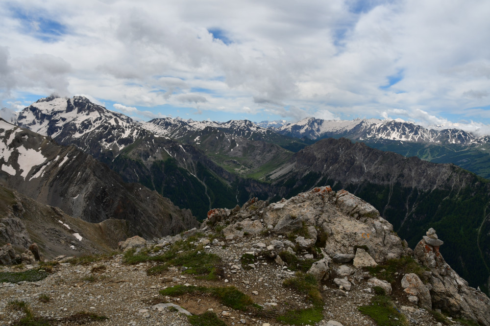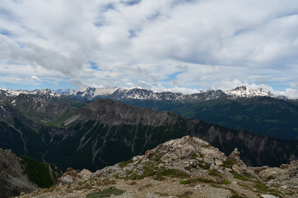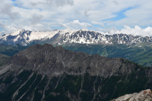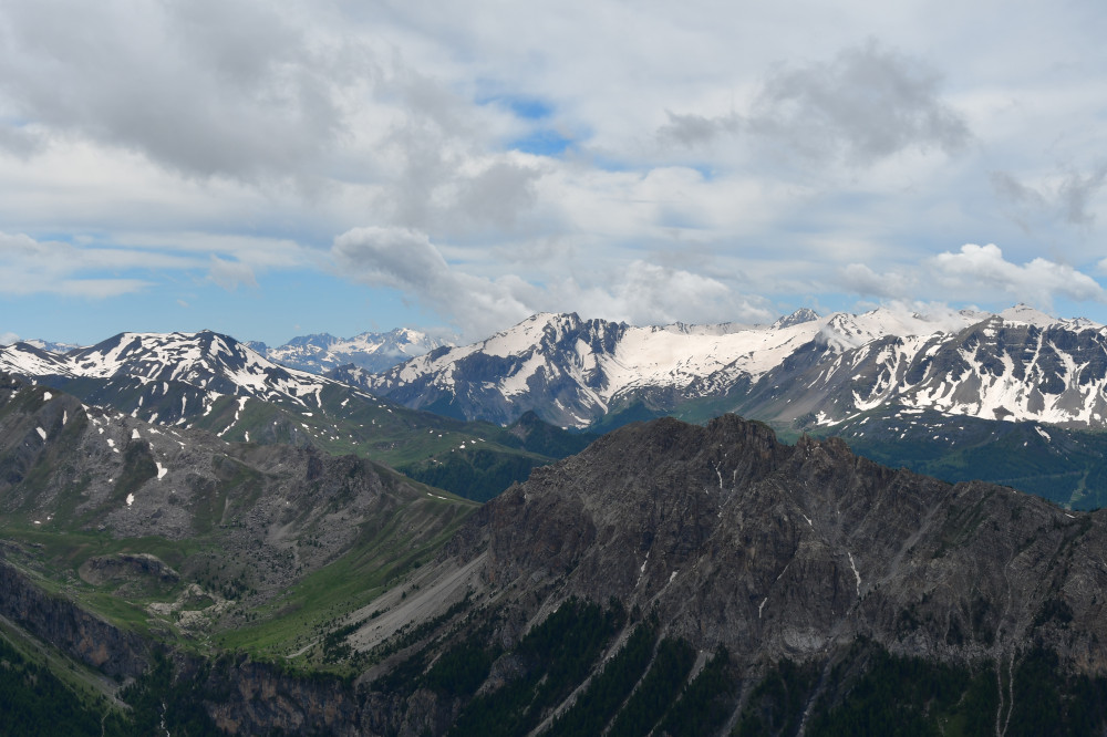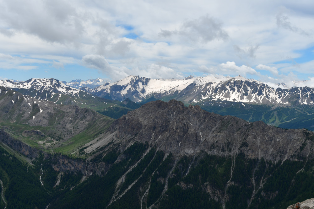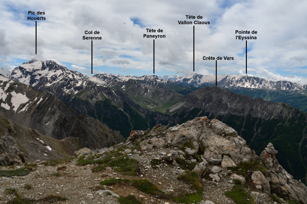 La crête de Vars est observée depuis le sommet du Pic d'Escreins, donc vue du nord à une distance de 3,6km.