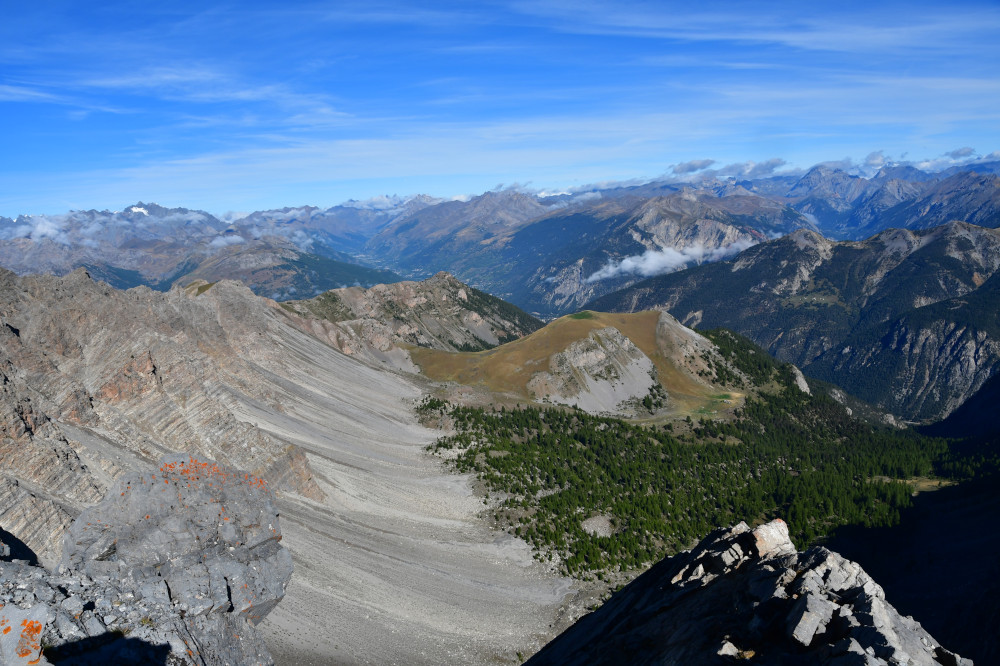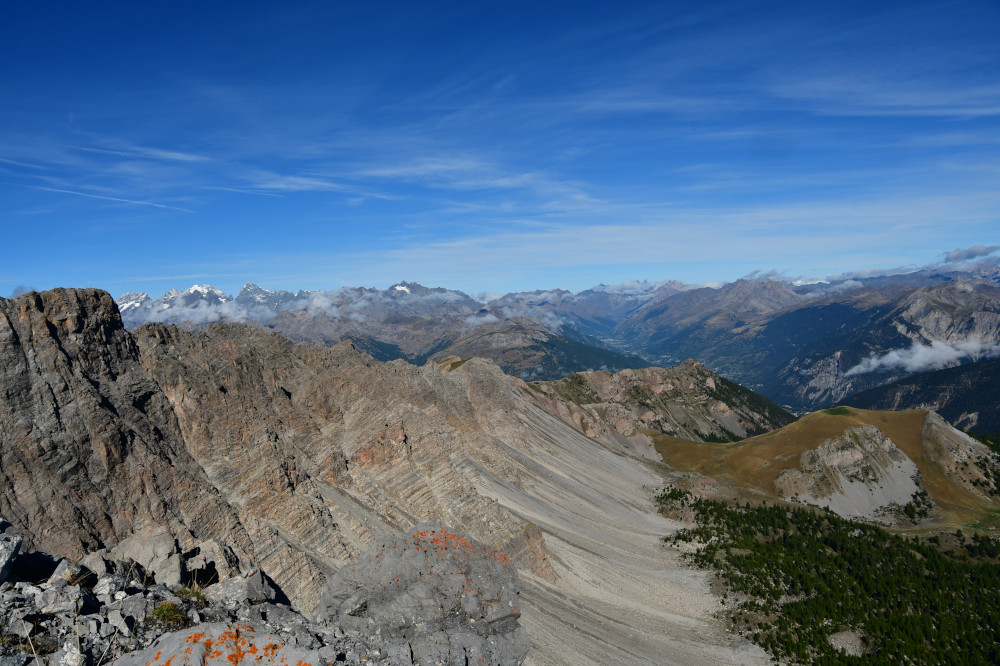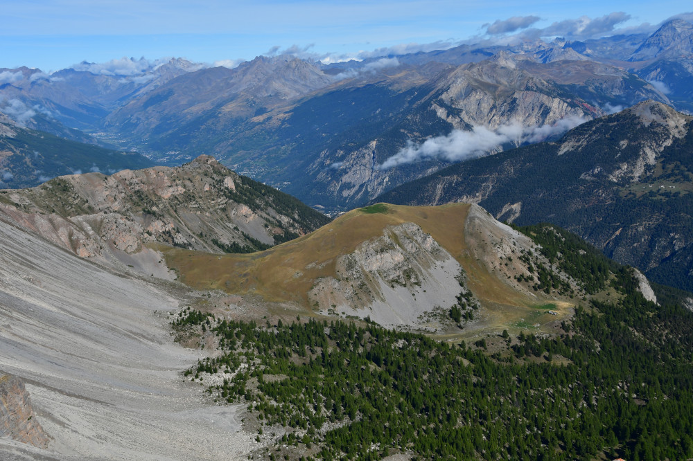 La crête de la Lause est observée depuis le sommet du Grand Peygu, donc vue du sud-sud-est à une distance de 2.2km.