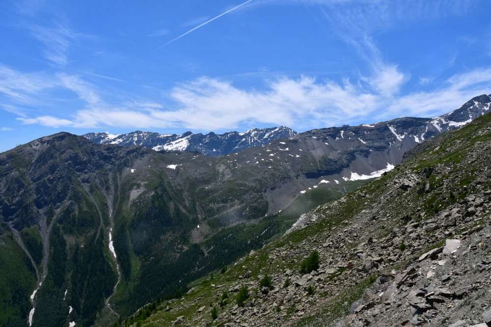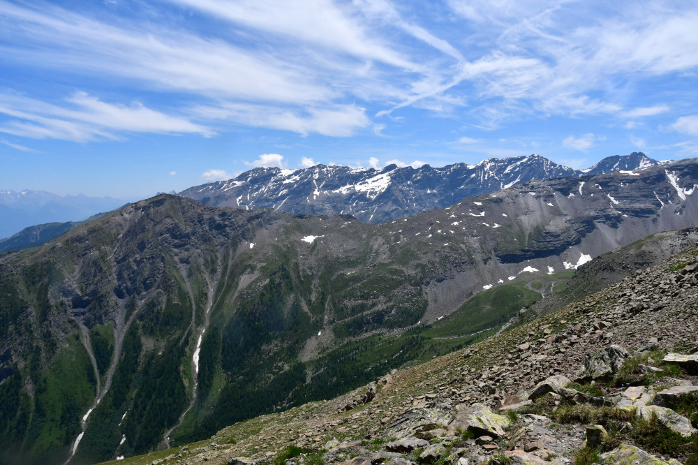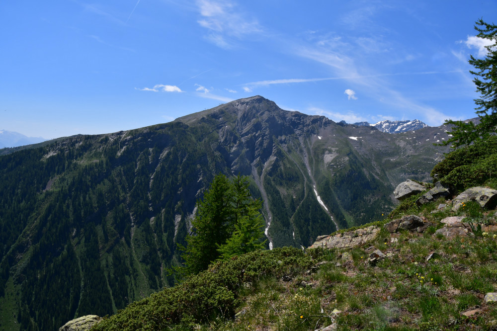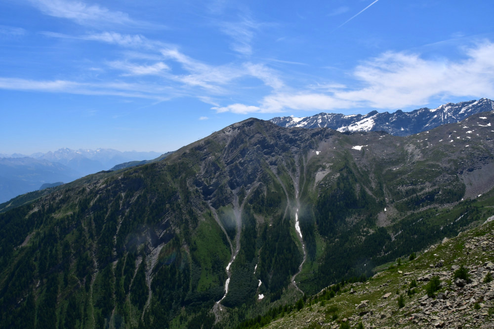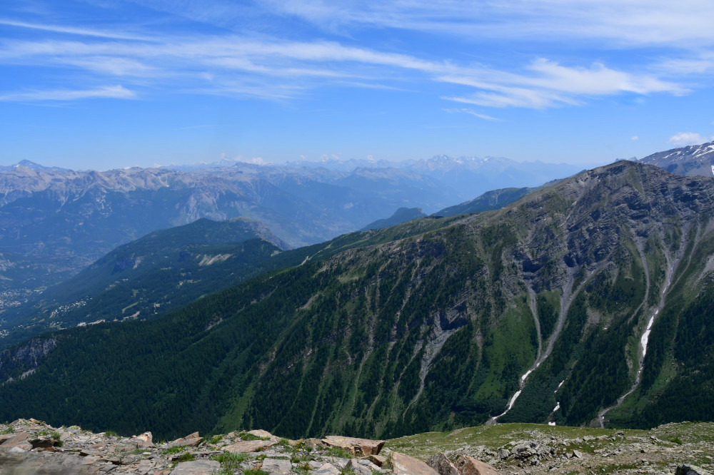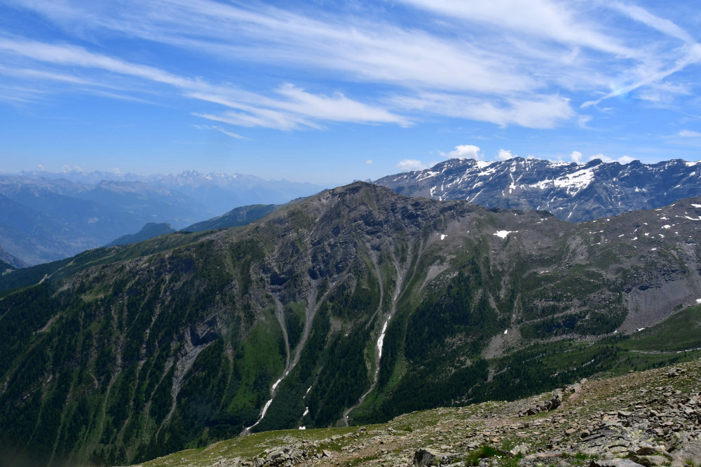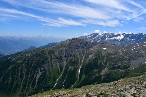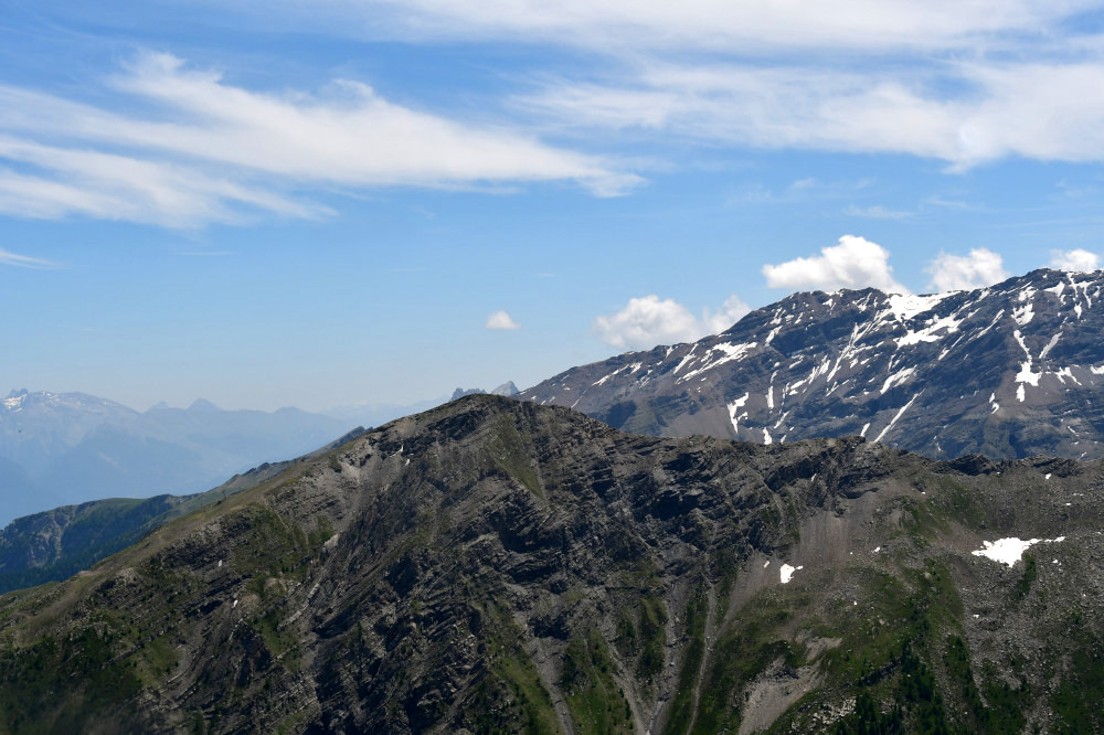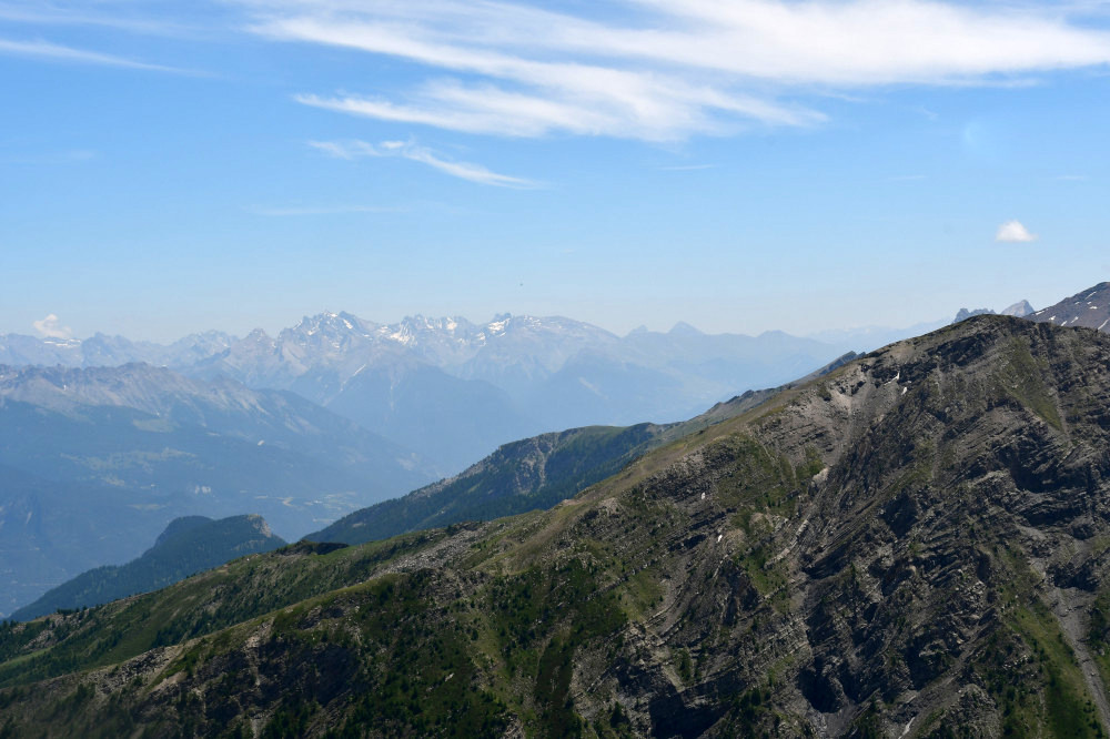 La crête de la Pendine est observée depuis la crête de Reychard, donc vue du nord à une distance de 2,5 km.