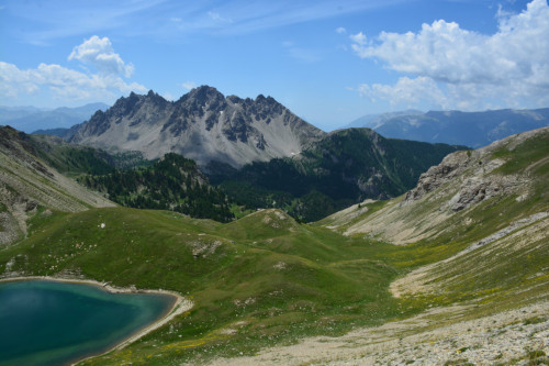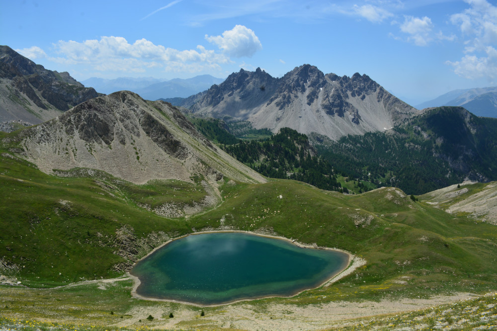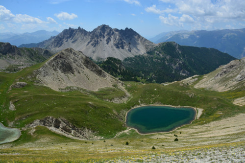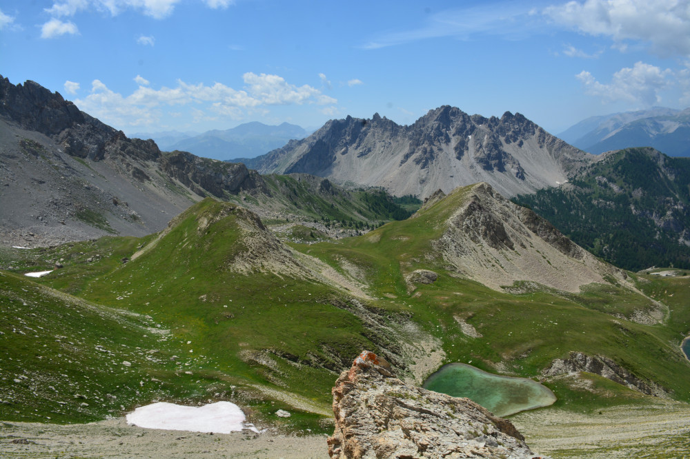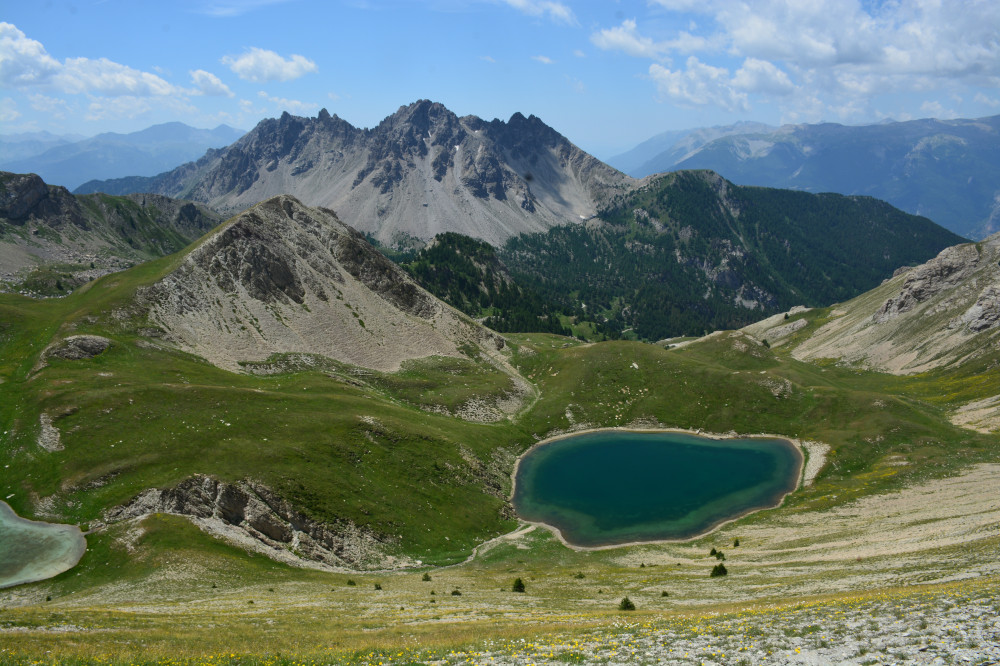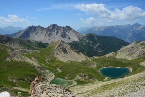 Les lacs du Lauzet vus de la crête de Patégou