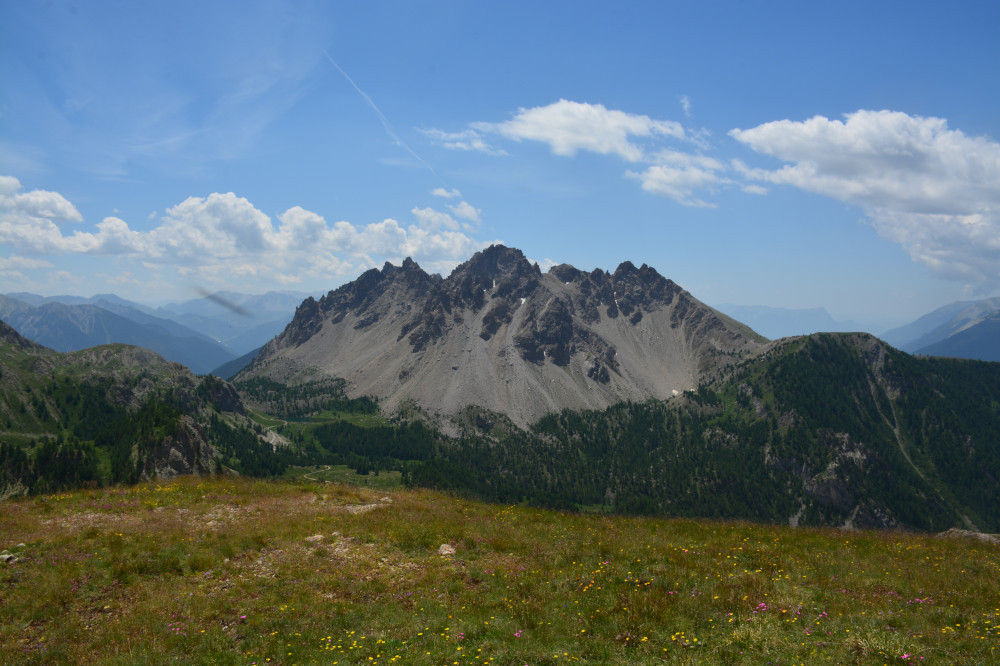 La crête des Crousas est observée depuis la crête de Patégou, donc vue du nord-est à une distance de 2,8m.