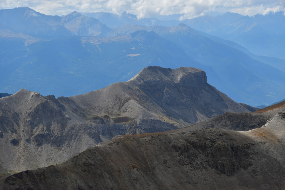La crête du Peyron est observée depuis le pic de Peyre Eyraute, donc vue du nord à une distance de 5.3km.