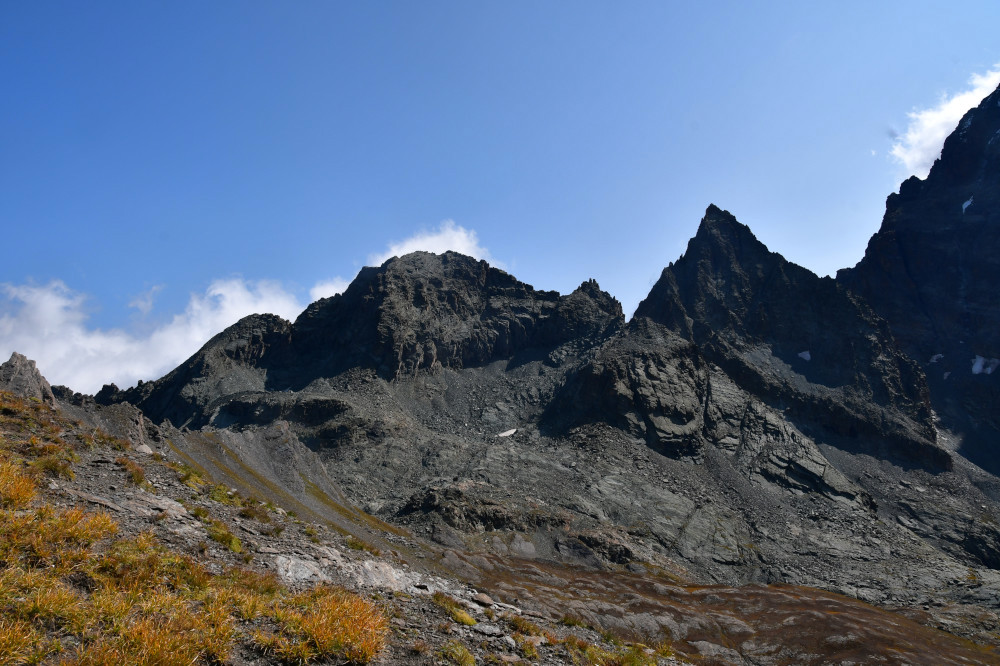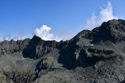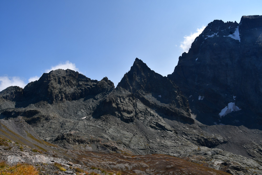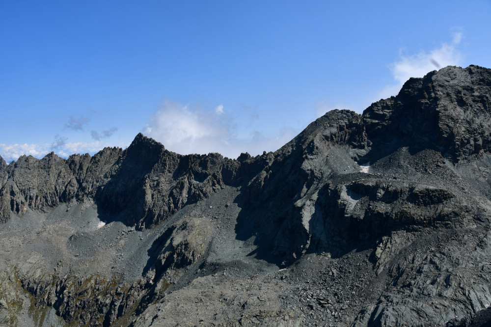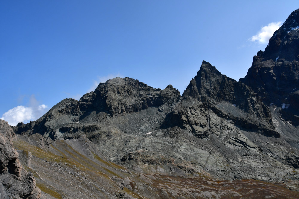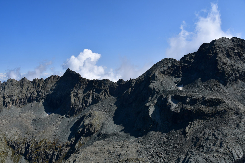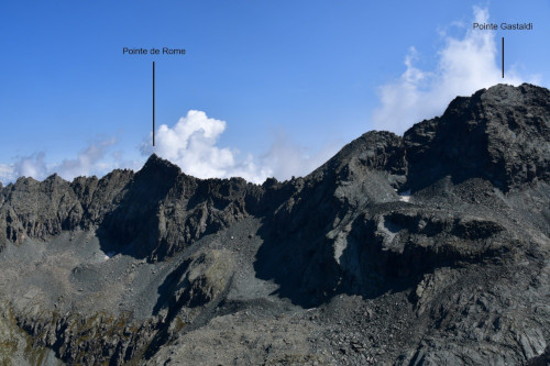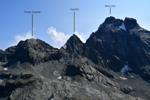 La pointe Gastaldi est obervée depuis le sommet de la point Jouanne ou Monte Losetta, donc vue depuis l'ouest à une distance de 1200 mètres.