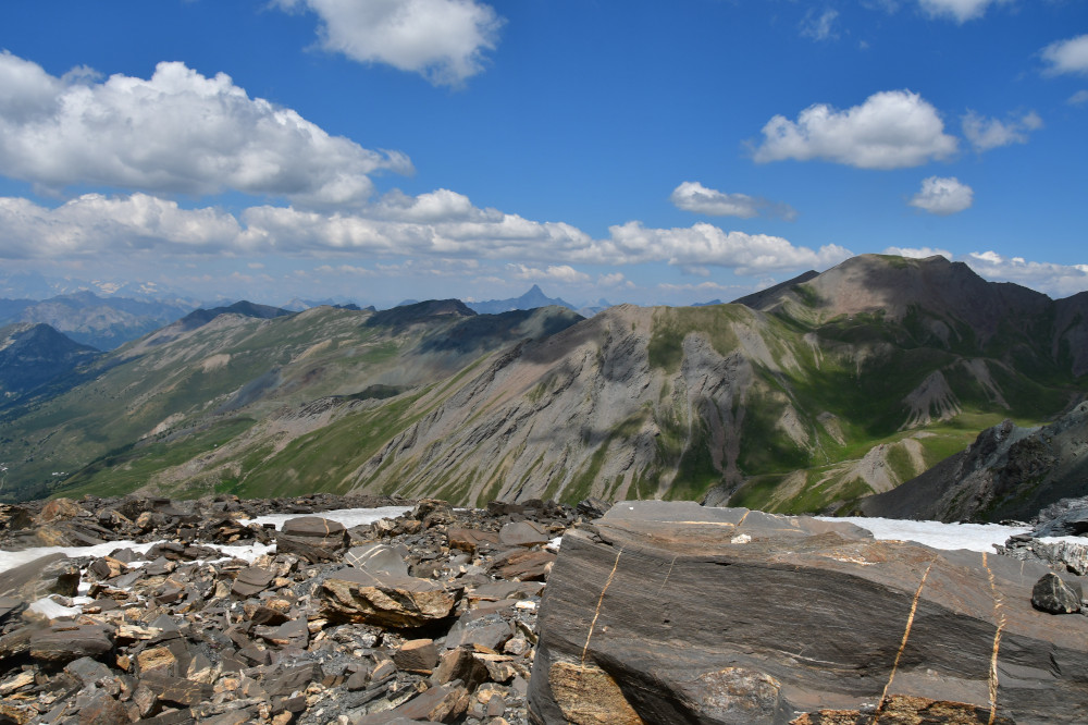 La pointe des Avers est observée depuis le pied de la Roche Noire, donc vue du sud à une distance de 2,7km.