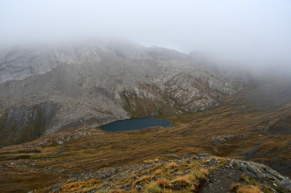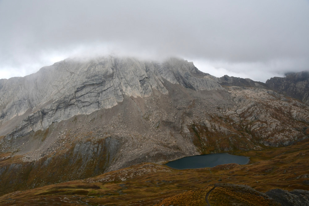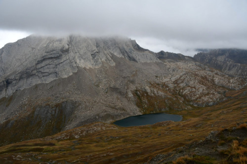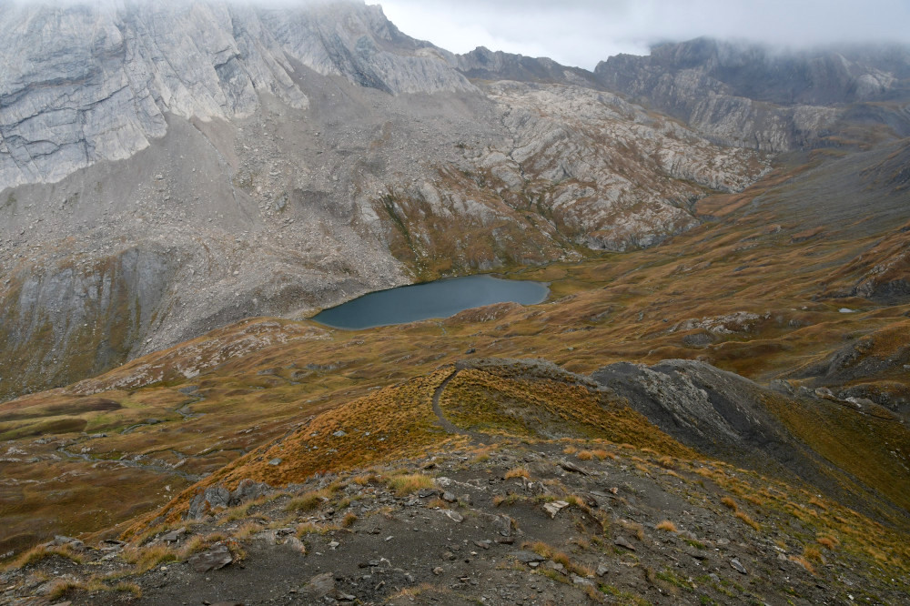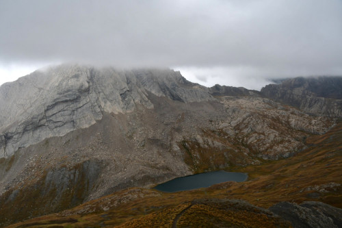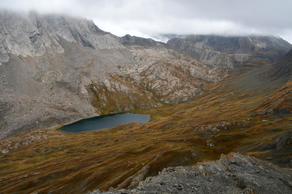 Le lac Foréant est observé depuis le Pic de Foréant, donc vu de l'ouest à une distance de 1,2km.