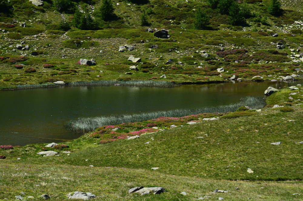 Le lac de Cristol est photographiée depuis le sentier de descente de la Porte de Cristol, donc depuis le sud-est. Distance : 300m.