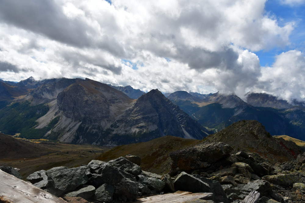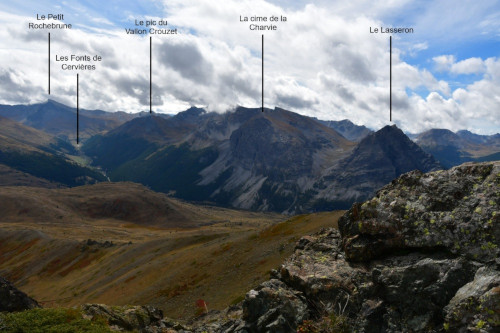 Le Lasseron est observé depuis le sommet du Grand Charvia, donc vu du nord à une distance de 4,7 km.
