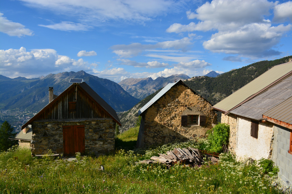 Le hameau du Mélézin vu depuis le départ du sentier vers le lac du Plan Vallon.