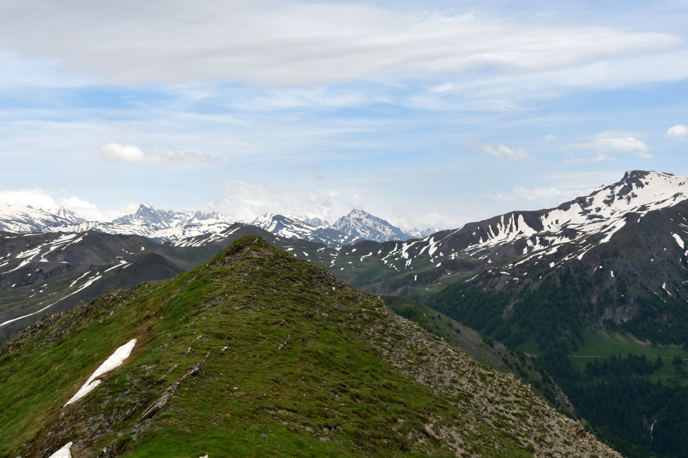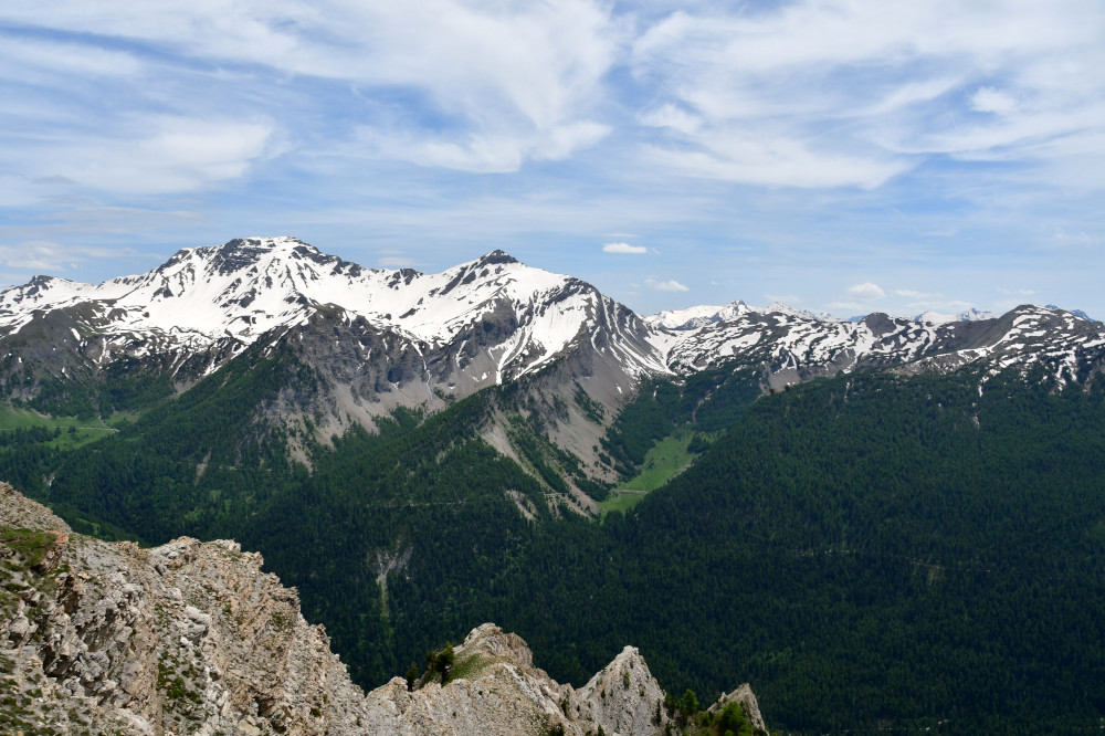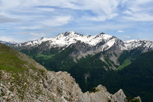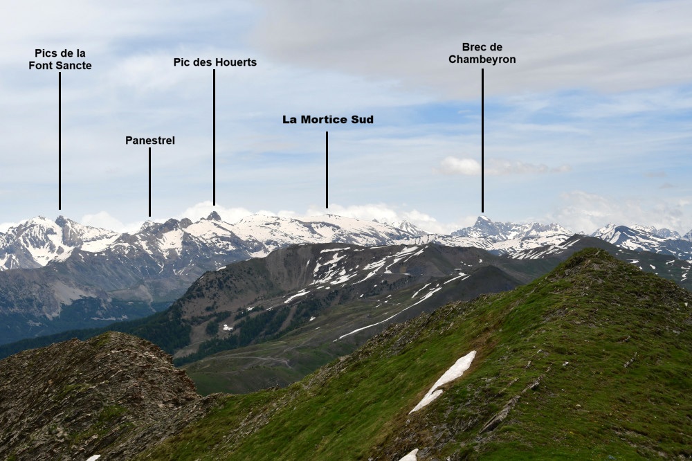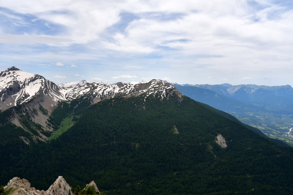 Le Mont Tailland est observé depuis le sommet du Pic du Clocher, donc vu du nord-nord-ouest à une distance de 4,9km.