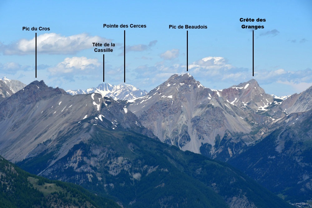 Le Pic de Beaudois est observé depuis le point culminant de la crête des Chambrettes, donc vu du sud-sud-est à une distance de 16km.