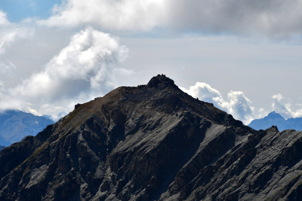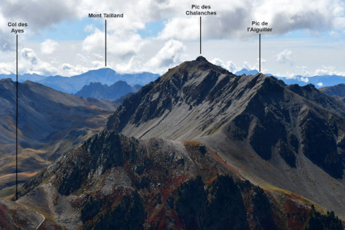 Le Pic des Chalanches est observé depuis la crête de Buguet, donc vu du nord-nord-est à une distance de 3.8km.