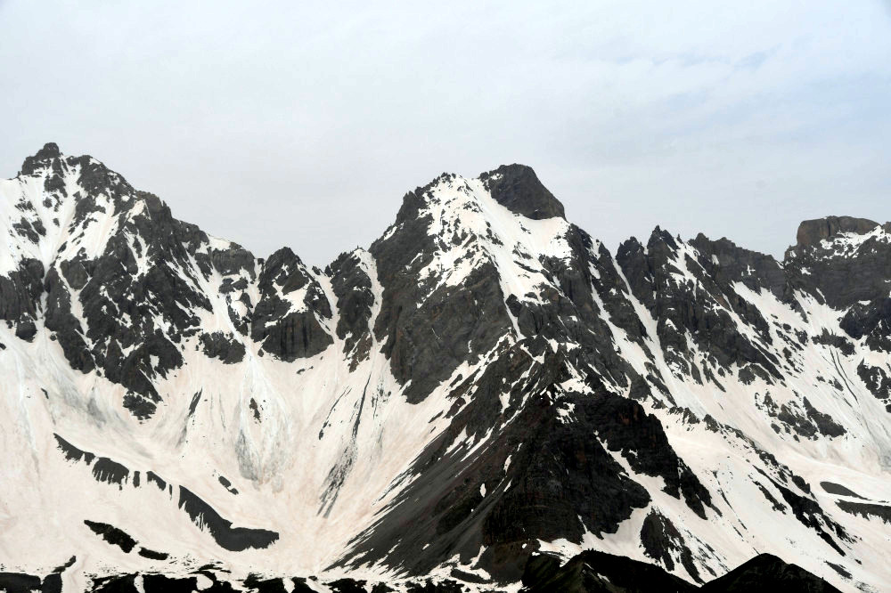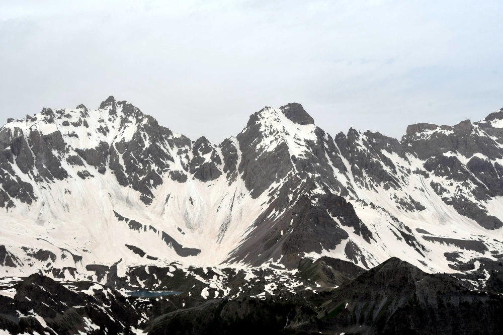 Le Pic des Heuvières est observé depuis le sommet du Queyrellet, donc vu du nord-est à une distance de 5,4km.