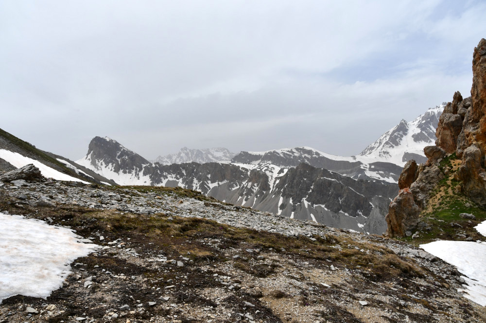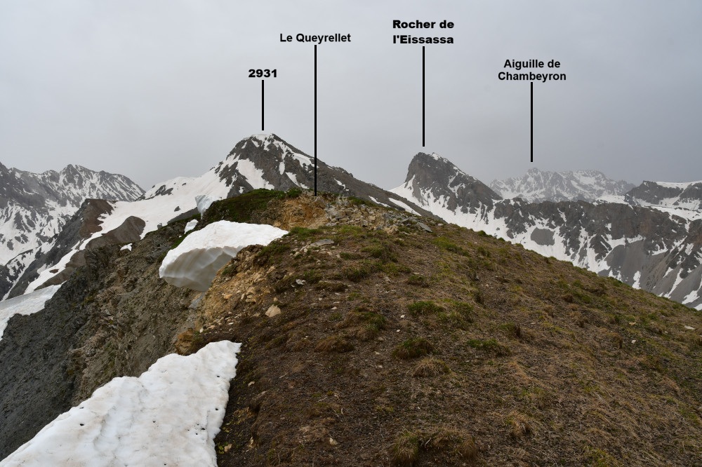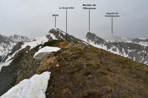 Le Rocher de l'Eissassa est observé depuis les pentes du Queyrellet, puis depuis le sommet. Donc vu du nord à une distance de 2,8km.