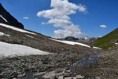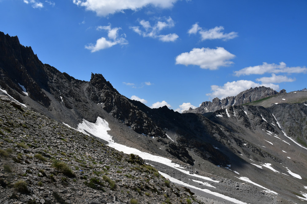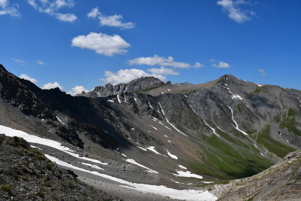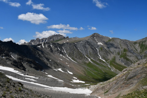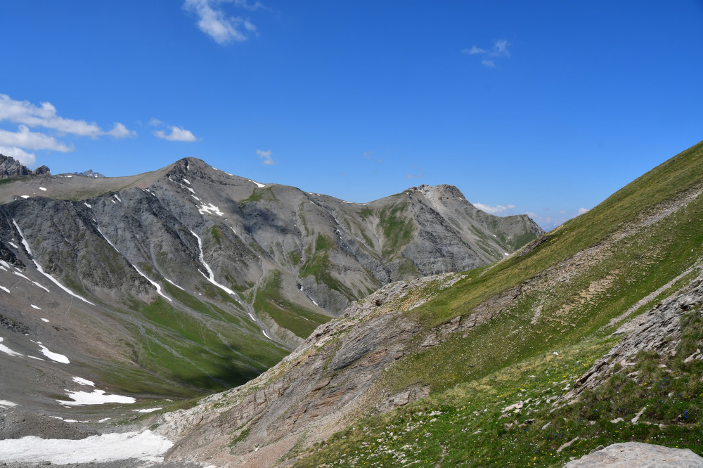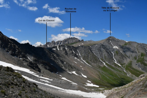 Le Rocher de l'Eissassa est observé depuis le ravin de Clausis, donc du nord-est à une distance de 2,9km.