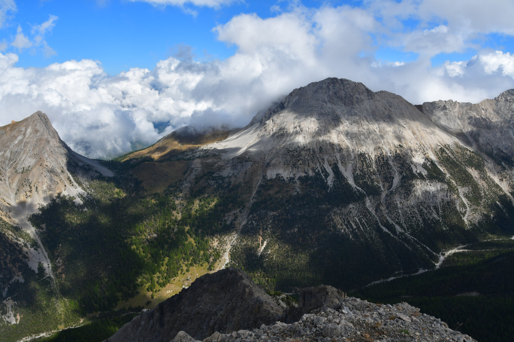 Le Sommet du Charra est observé depuis le sommet de la Pointe de Pécé, donc vu du sud-sud-ouest à une distance de 3.0km.