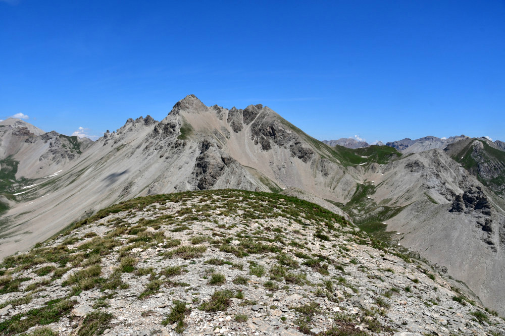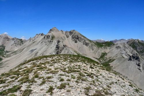 Le pic du Haut Mouriare est observé depuis le sommet des Aurus, donc vu du sud à une distance de 1,5km.